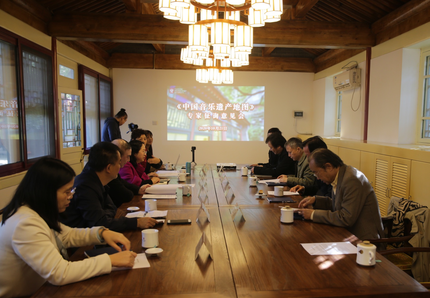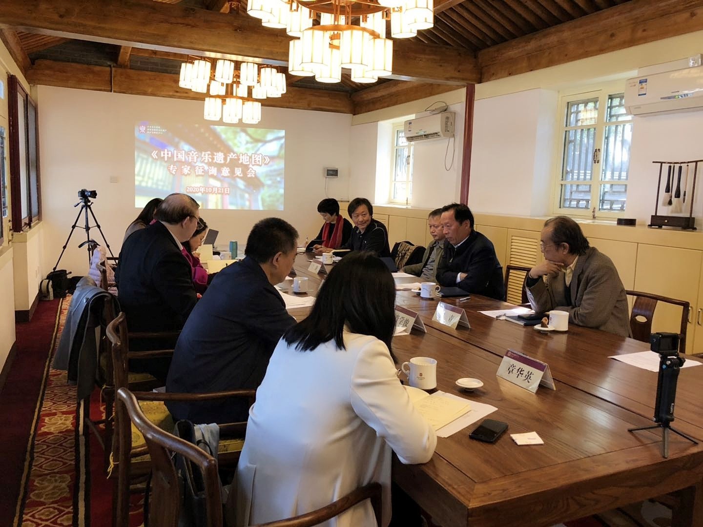 2020年10月21日上午,《中国音乐遗产地图》项目专家征询意见会在开云kaiyun官方网站国家非物质文化遗产保护与研究中心王府小院顺利召开。本次会议旨在邀请校内外相关专家、学者对项目的可行性、科学性等方面进行意见征询。参加会议的专家、学者有原文化部副部长王文章先生、非物质文化遗产保护专家田青先生、文化和旅游部民族民间文艺发展中心兰静主任、武汉音乐学院李幼平副院长以及开云kaiyun官方网站俞峰院长、肖学俊副院长、苗建华副书记、章红艳教授、章华英教授等。大家齐聚在具有百年历史的醇亲王府小院中,探讨中国非遗音乐的未来之路。古香古色的王府小院成为非遗音乐保护中心所在地,这也为本次会议平添一份独特的历史感。