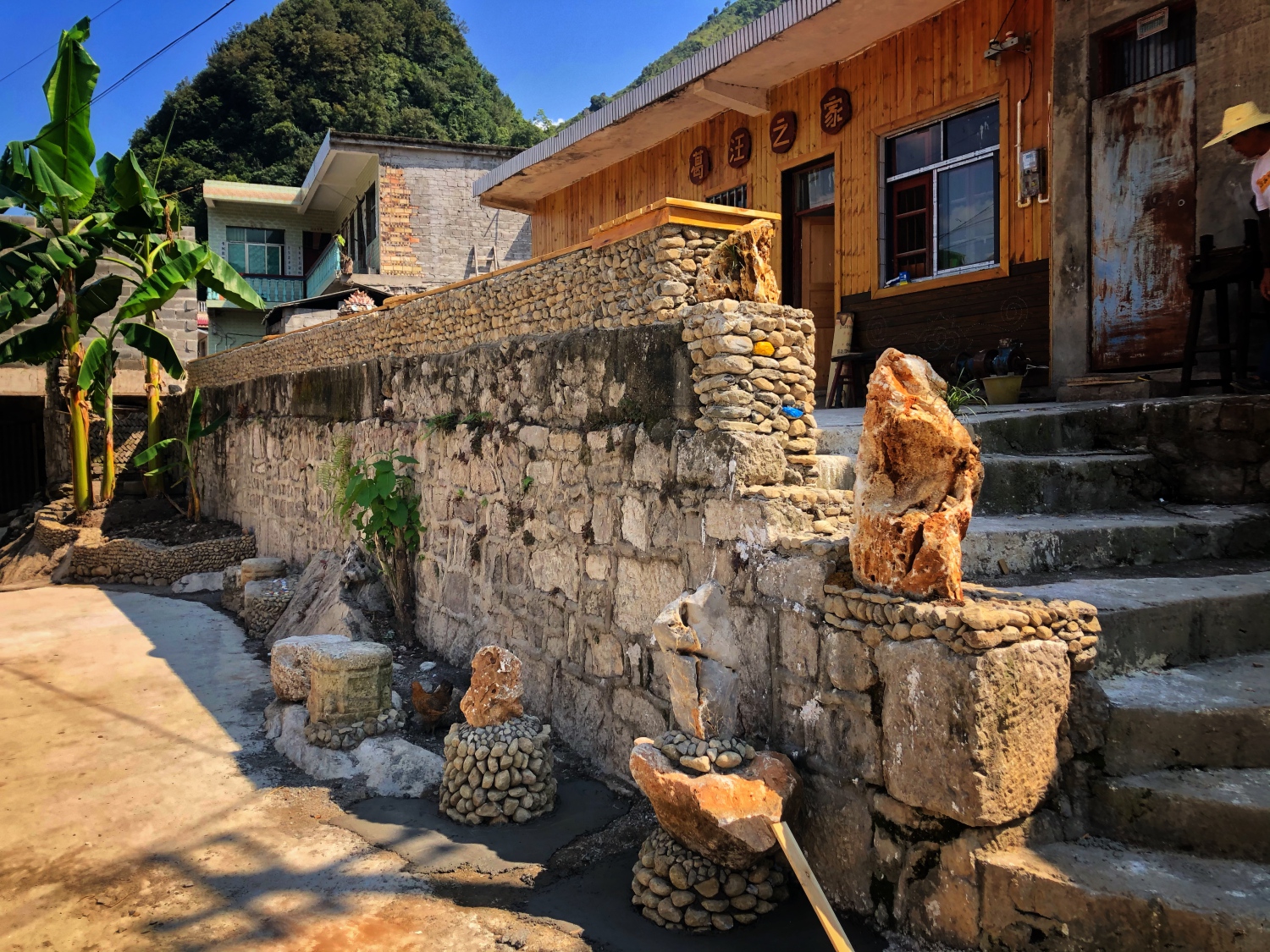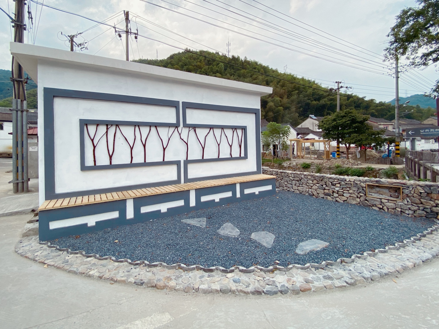 在丛老师的讲座中,向我们列举了他与团队在葛家村、城杨村、定汪村的案例,用具体的实践告诉我们他是如何将理论付诸于行动,例如丛老师在做了充分的调研后,结合当地实际情况用低成本进行艺术设计改善村民们的休闲生活环境,并且用艺术设计去改造路边的电线杆,并赋予以电线杆为基础再创造的实用价值;指导村民们并和村民们一起创作巨大体量的艺术作品,丛老师认为大型作品有助于提升村民们创造灵感的迸发,还在村民们自己完成的艺术作品旁增设了小木牌,写上了每一个创作者的名字。