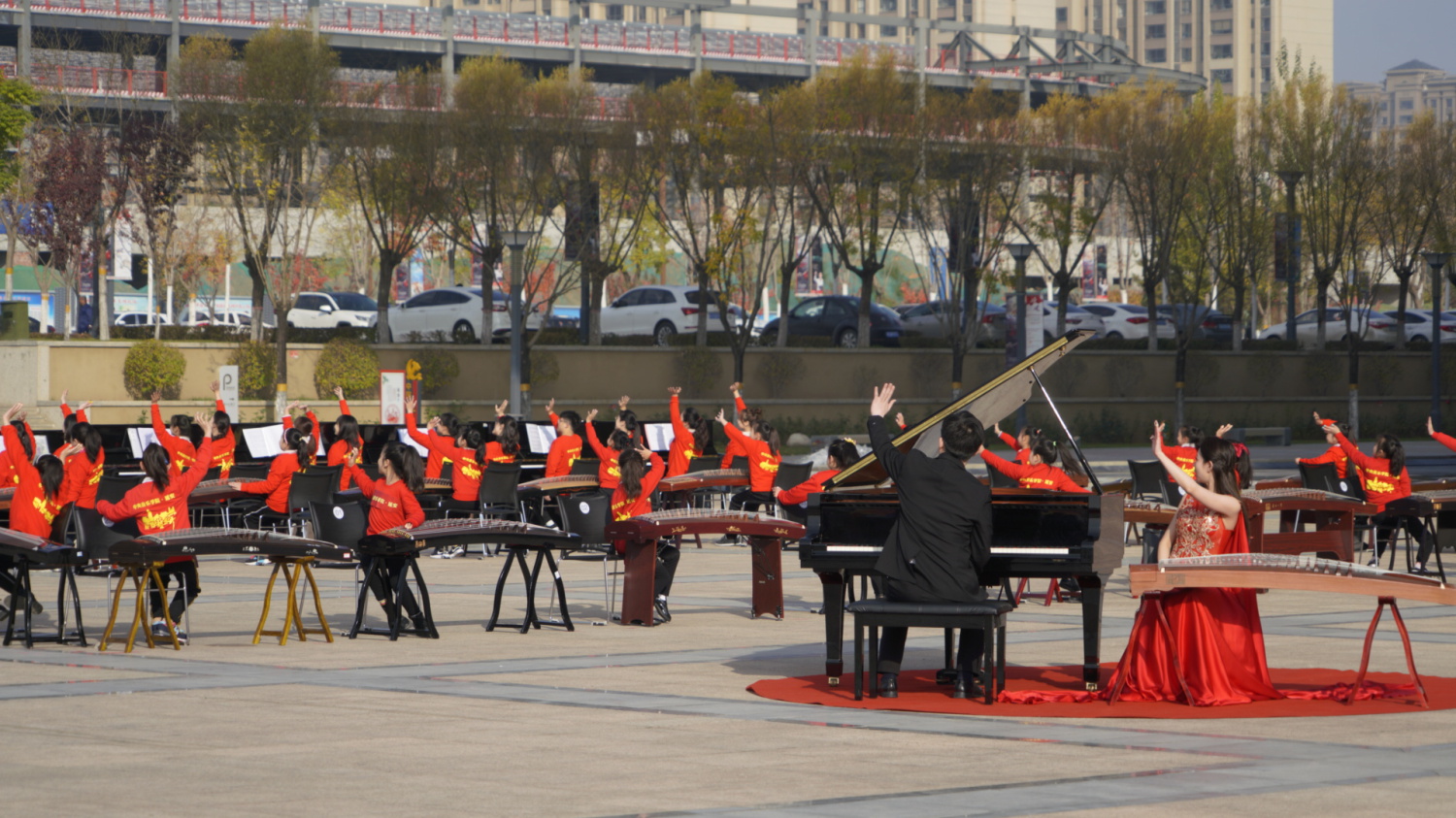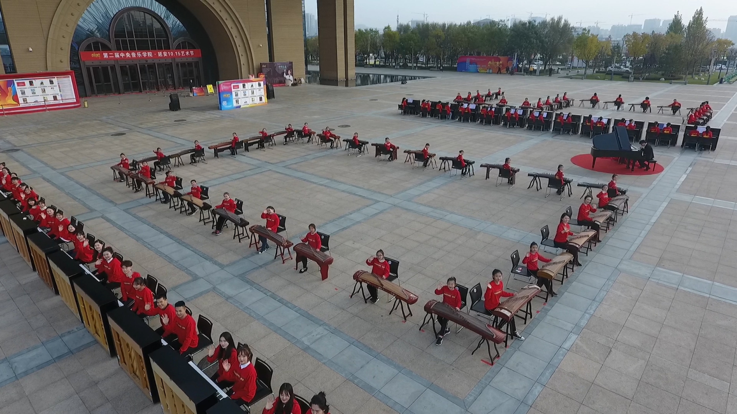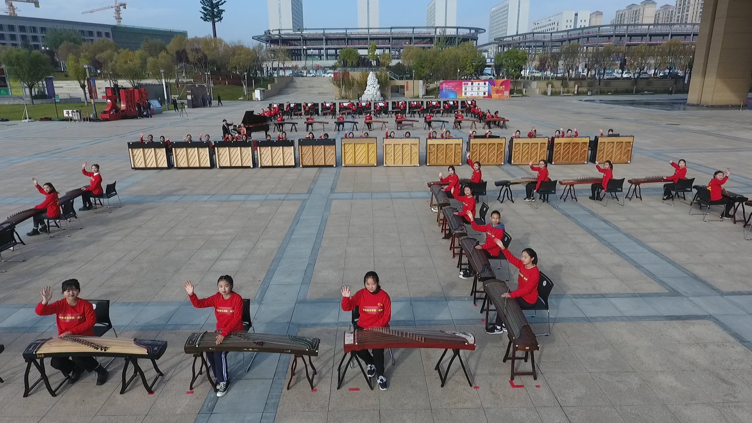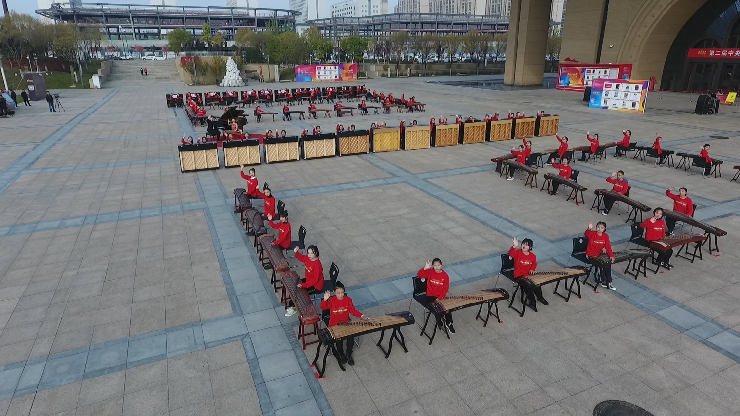 通过百人古筝、钢琴齐奏的形式