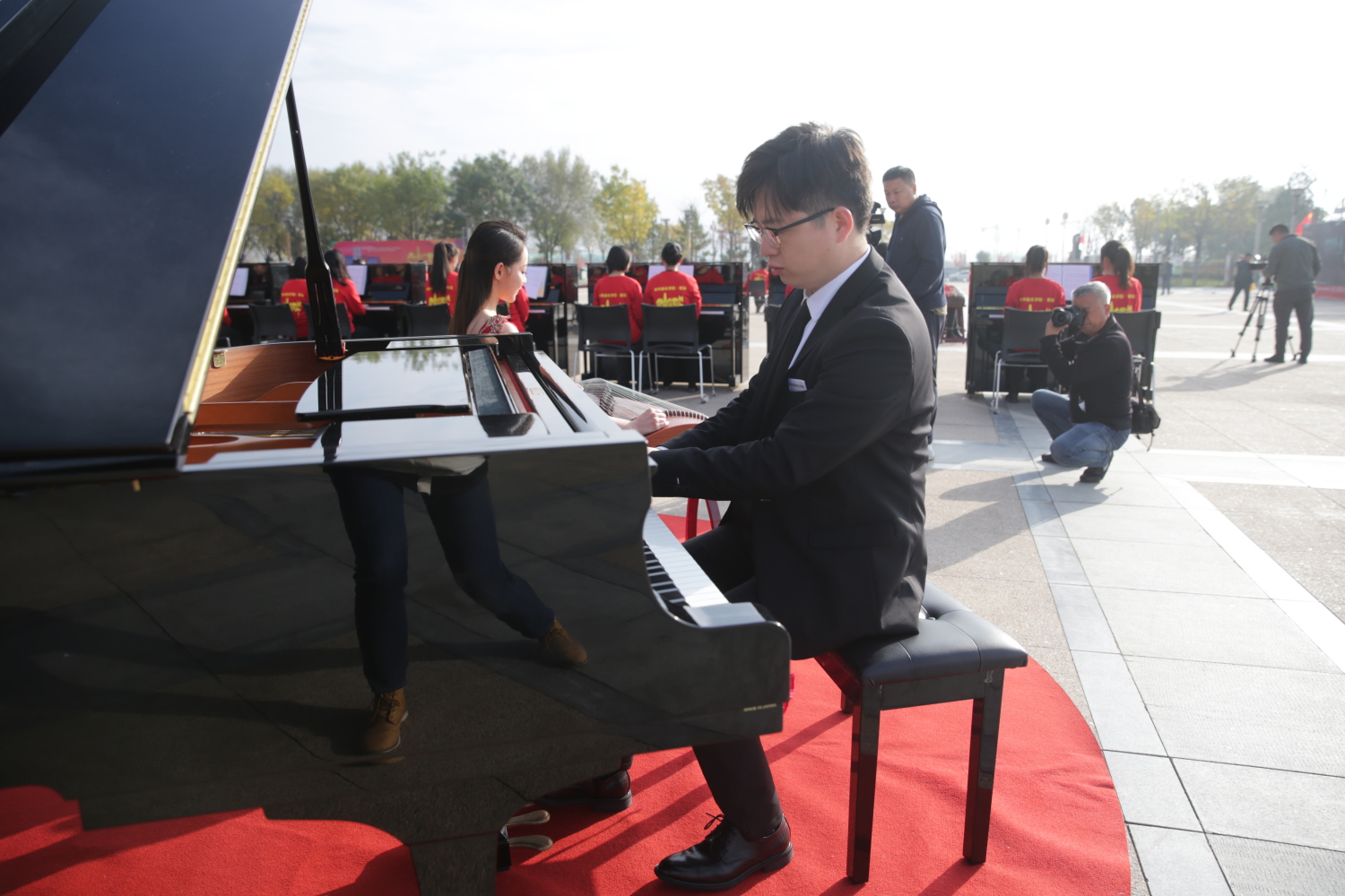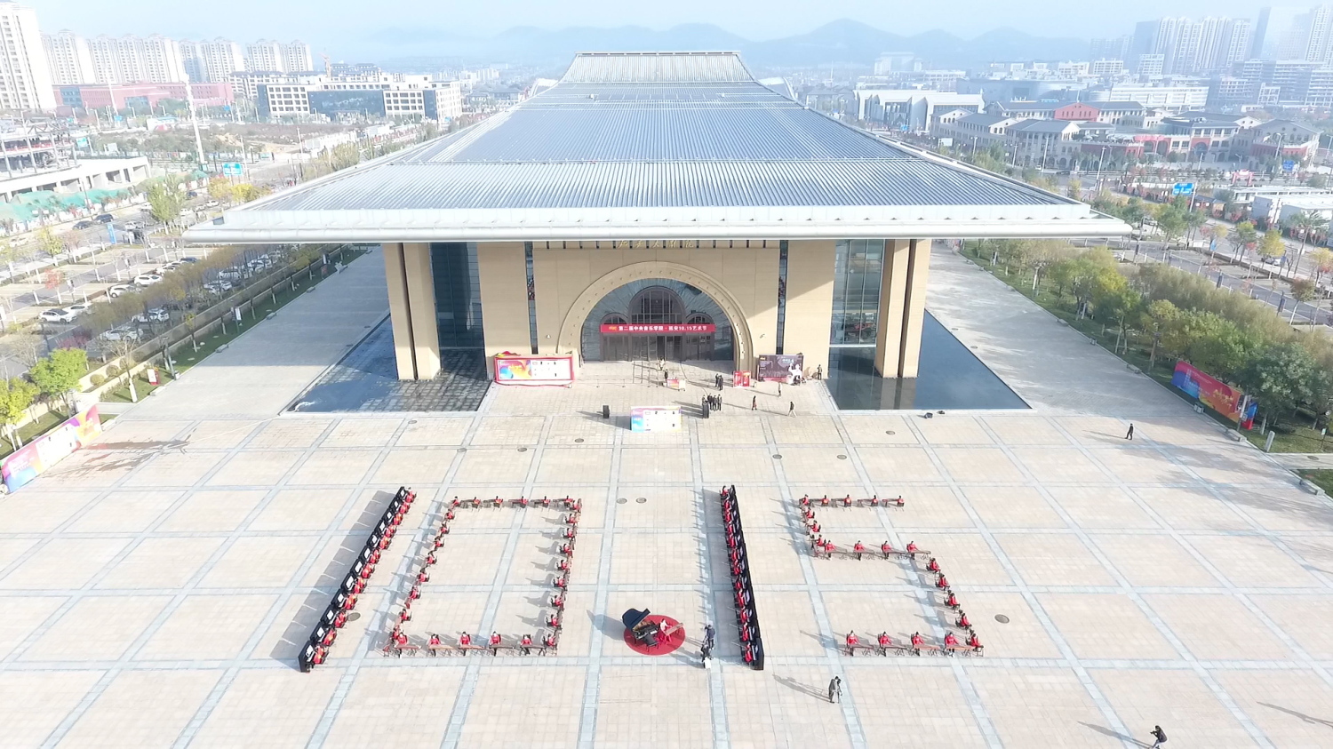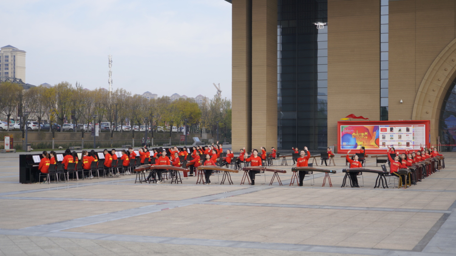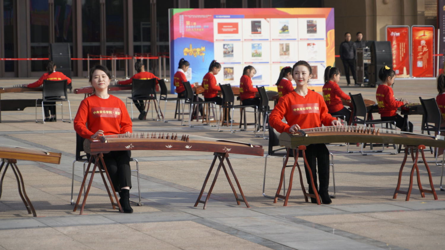 通过百人古筝、钢琴齐奏的形式