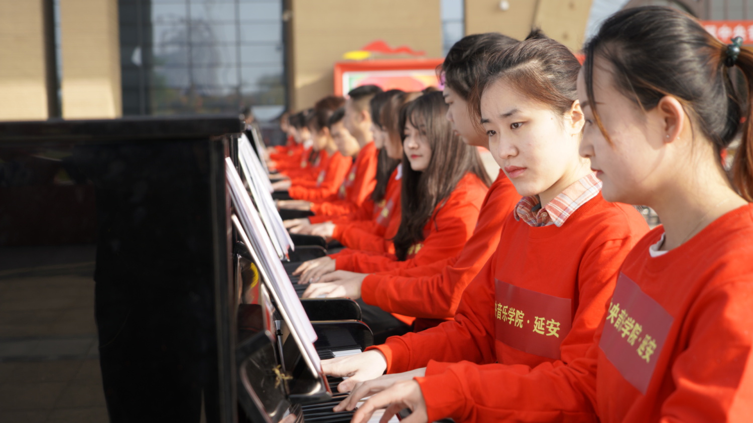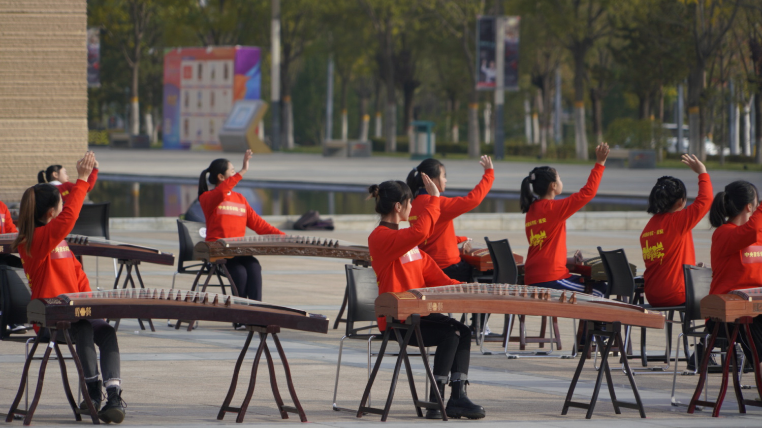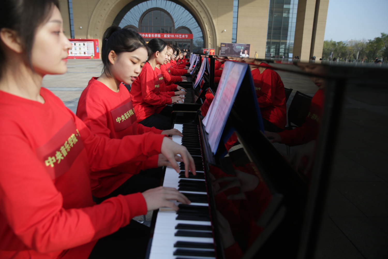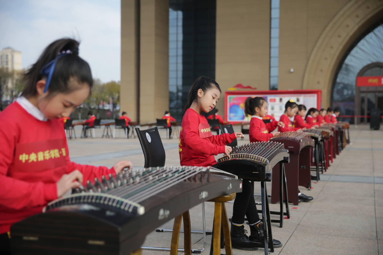 通过百人古筝、钢琴齐奏的形式