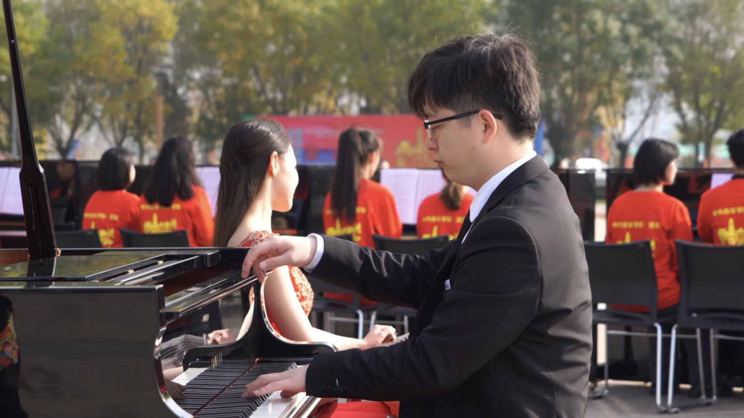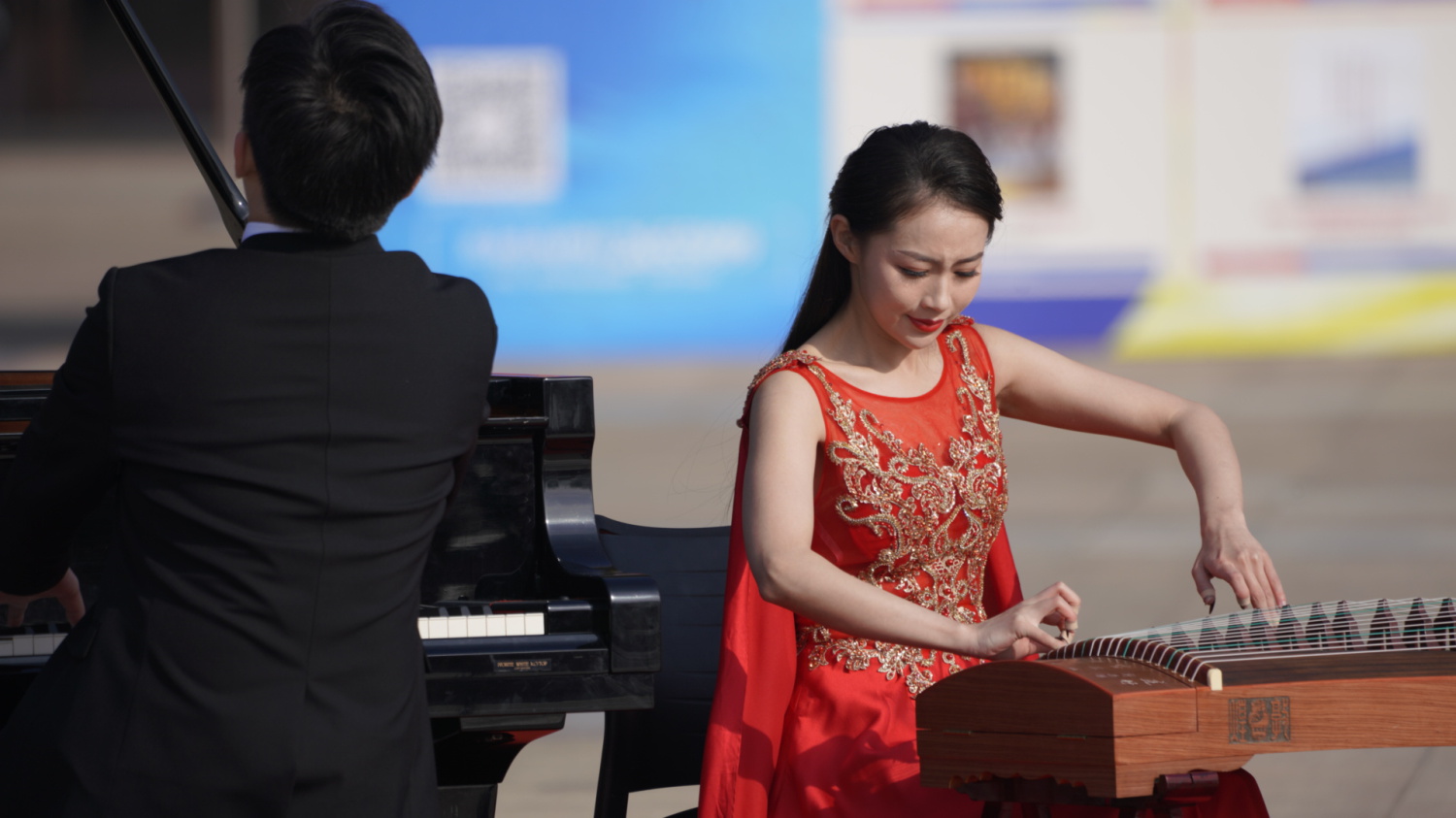 分别担任钢琴和古筝领奏