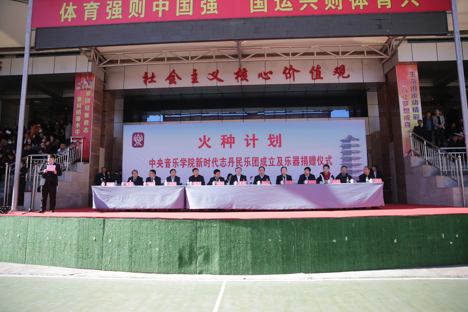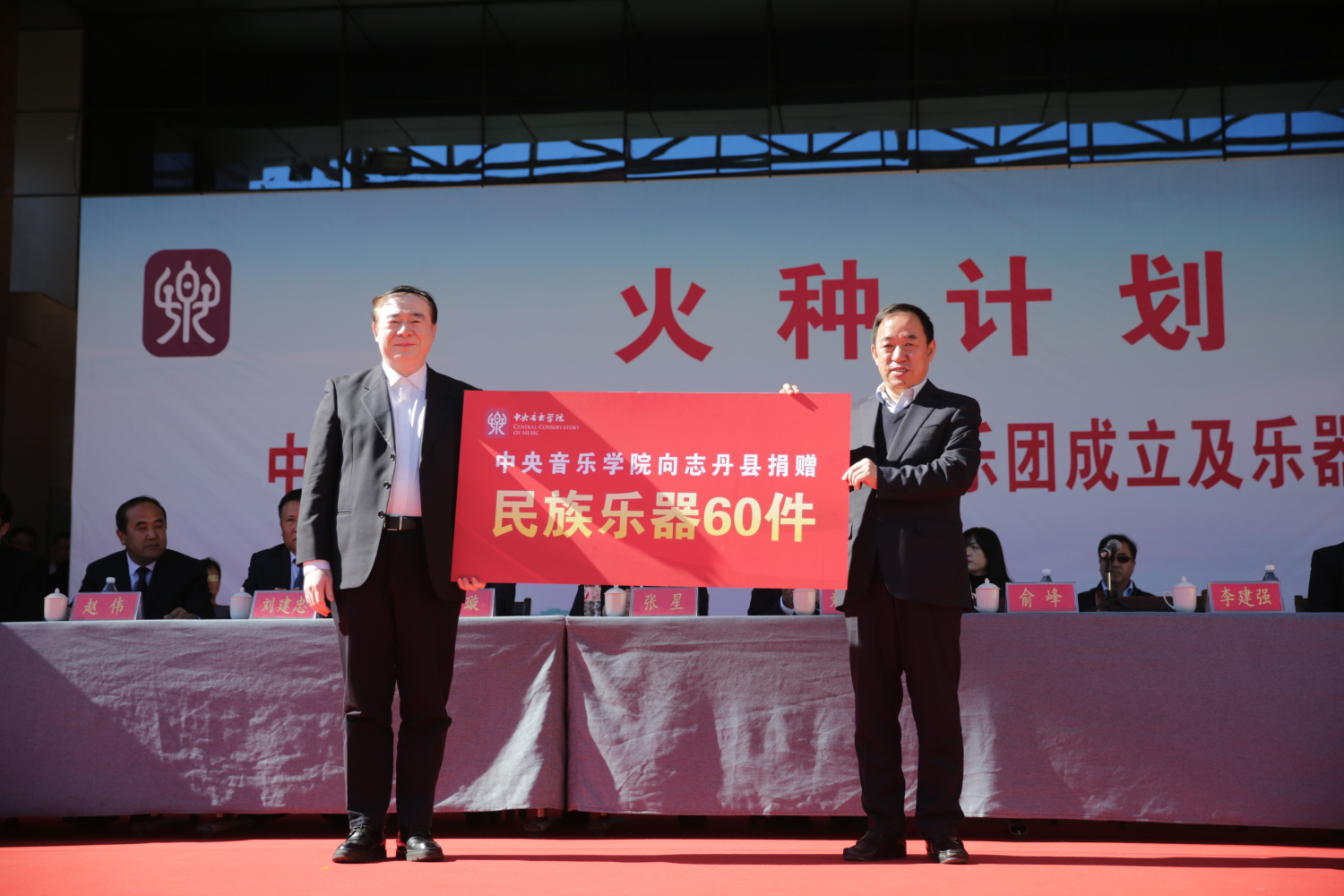 金秋十月,红都大地硕果飘香。10月16日上午,“火种计划”——开云kaiyun官方网站新时代志丹民乐团成立暨乐器捐赠仪式在志丹县新时代文明实践中心广场举行。延安市委副秘书长刘昌宏、市委文明办主任曹瑞智、志丹县委书记李建强、县长张星、县政协主席李璇、开云kaiyun官方网站院长俞峰、院长办公室主任王歆、指挥系党总支副书记陈冰、演出实践管理中心主任李英泰、院长办公室督办科科长傅冠齐出席捐赠仪式,志丹县各级领导、媒体及中小学生代表参加仪式。仪式由志丹县副县长苏凯麒主持。