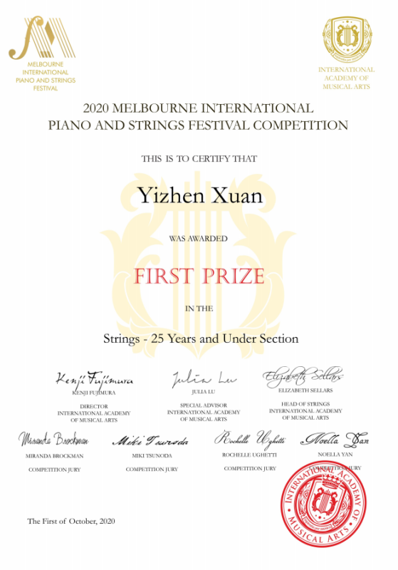 2020年获得奥地利萨尔茨堡“艺术家大奖赛”中提琴青年组第一名
