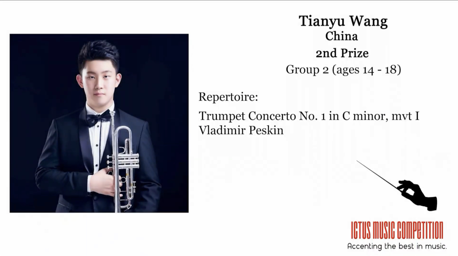 2020年获得Ictus国际小号大赛第二名。