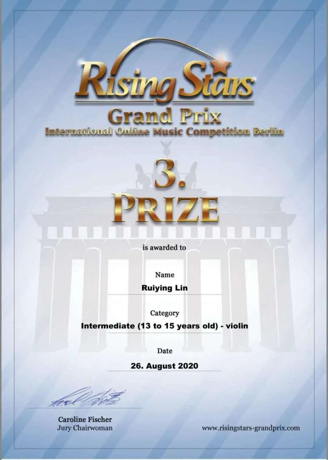 德国柏林希望之星国际音乐比赛始于2016年,是集合钢琴、弦乐、管乐、打击乐、声乐、手风琴、民族音乐、爵士乐的综合性音乐比赛,面向全世界古典乐选手。大赛的主旨是寻找有才华的音乐家并给予他们在柏林音乐厅演奏的机会,展示其才华。2020年第5届比赛的部分获奖者将在2021年受邀参加在柏林爱乐音乐厅举行的获奖者音乐会。获奖者来自亚洲、欧洲、美洲、大洋洲,包括美国、加拿大、日本、韩国等18个国家。