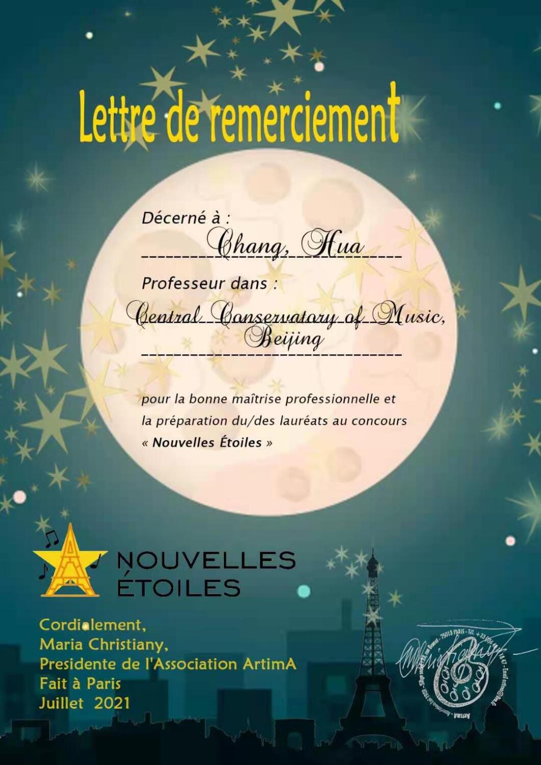 2021第四届法国新星国际音乐大赛(钢琴)第一名