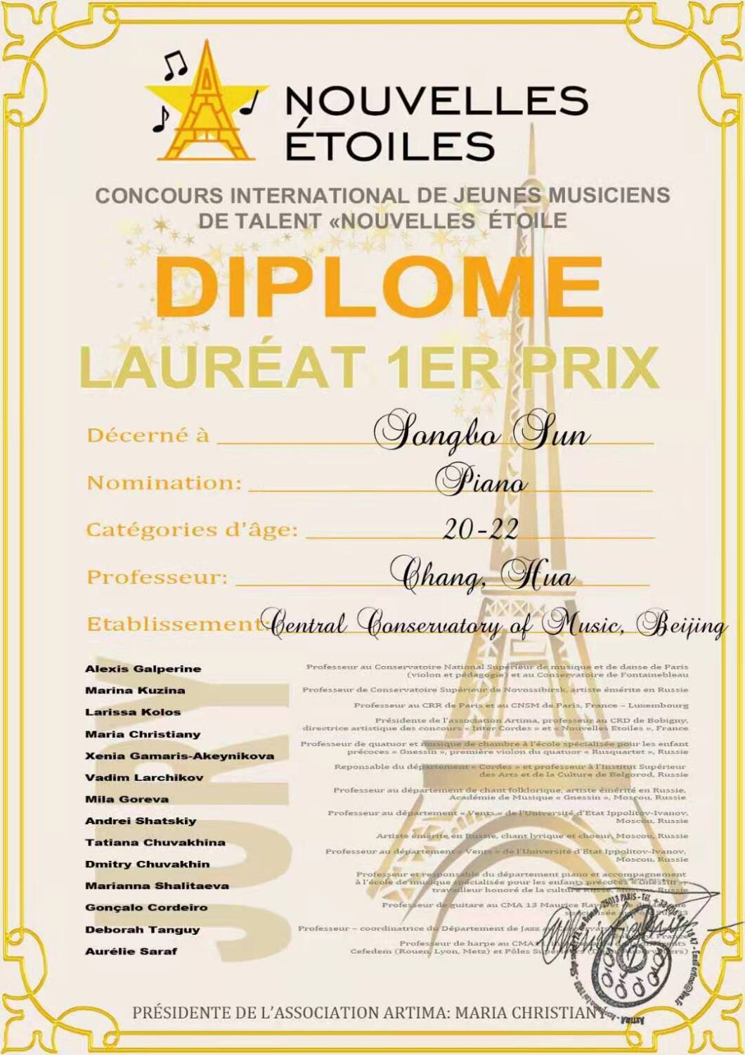 本届大赛由法国巴黎埃蒂玛国际文化协会主办,明弓专业室内乐团、让•威纳音乐学院协办,获得世界各大知名学府的广泛关注,吸引了来自美国、德国、法国、荷兰、西班牙等各国的数十名优秀青年钢琴家参赛。最终来自开云kaiyun官方网站的孙崧博摘得桂冠,同时也是自比赛举行以来,首位获得奖项的中国人。