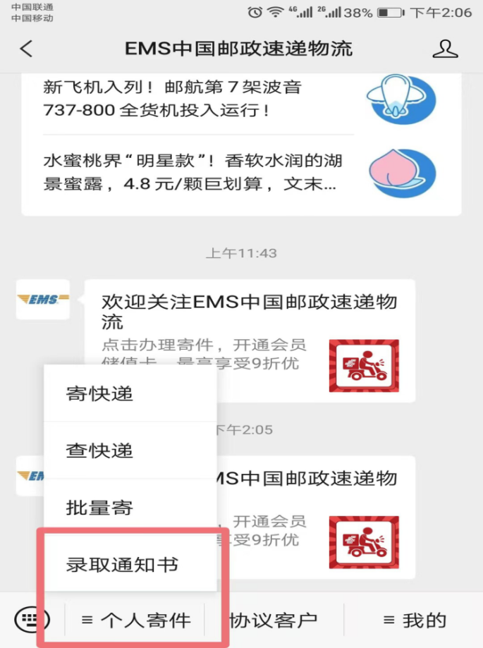 澳门保送生请通过中国邮政EMS客服电话咨询单号。若有其他邮件方面的问题,也请咨询EMS客服电话。
