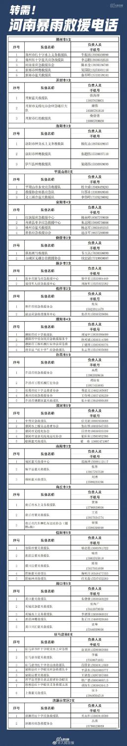 河南全省救援电话汇总