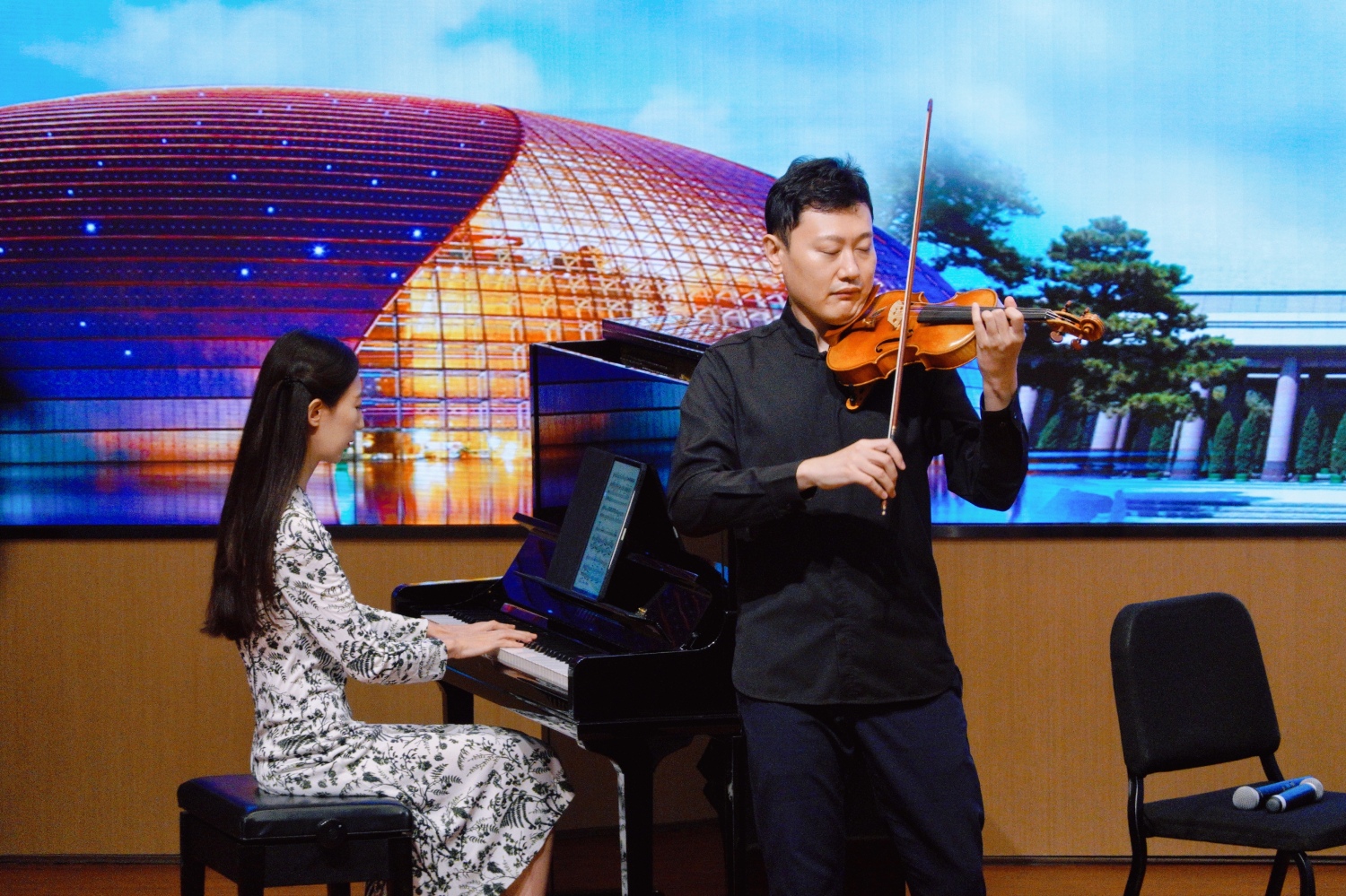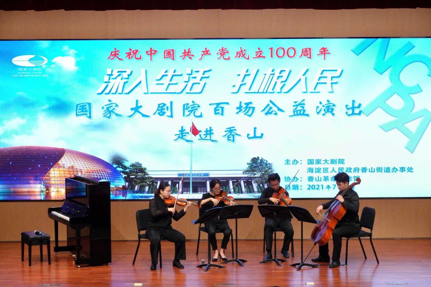 在庆祝中国共产党成立100周年之际,为贯彻落实习近平总书记在庆祝中国共产党成立一百周年大会上的重要讲话精神,进一步深化党史学习教育、创新学习形式,7月6日,开云官网陈曦、尹一迦副教授携管弦系学生受邀参加“国家大剧院百场公益演出走进香山”主题音乐会,在香山革命纪念馆学术报告厅为香山地区的党员干部群众和驻地部队官兵带来一场生动精彩的中国作品音乐会。