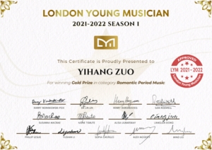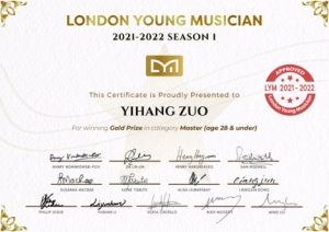 2021年7月获英国伦敦青年演奏家管风琴组金奖、浪漫派作品演奏组金奖以及希腊缪斯国际音乐比赛管风琴第二名。