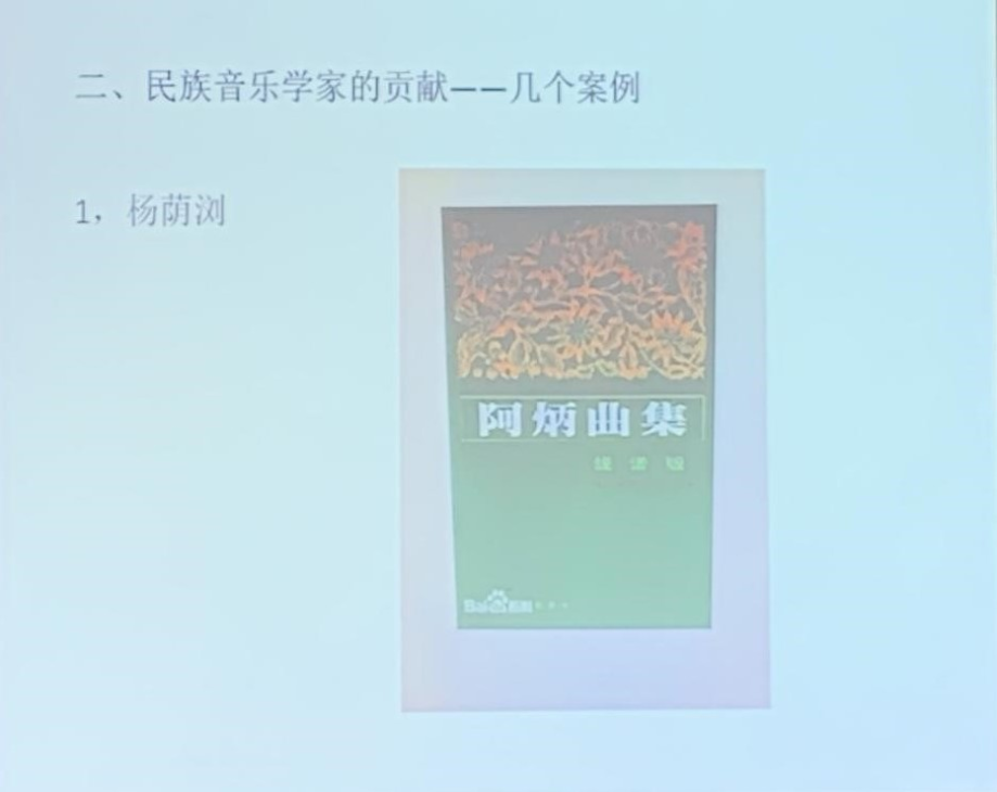 其次,张老师通过几个案例对杨荫浏、王珊、田青、张伯瑜、王耀华等民族音乐学家的贡献作了介绍,对他们为中国传统音乐的保护工作给予了肯定。并从历史上的《四库全书》到当代《中国民间文艺集成志书》,阐述了其在记录、保存、传承中国传统文化中的重要作用和宝贵的学术价值。