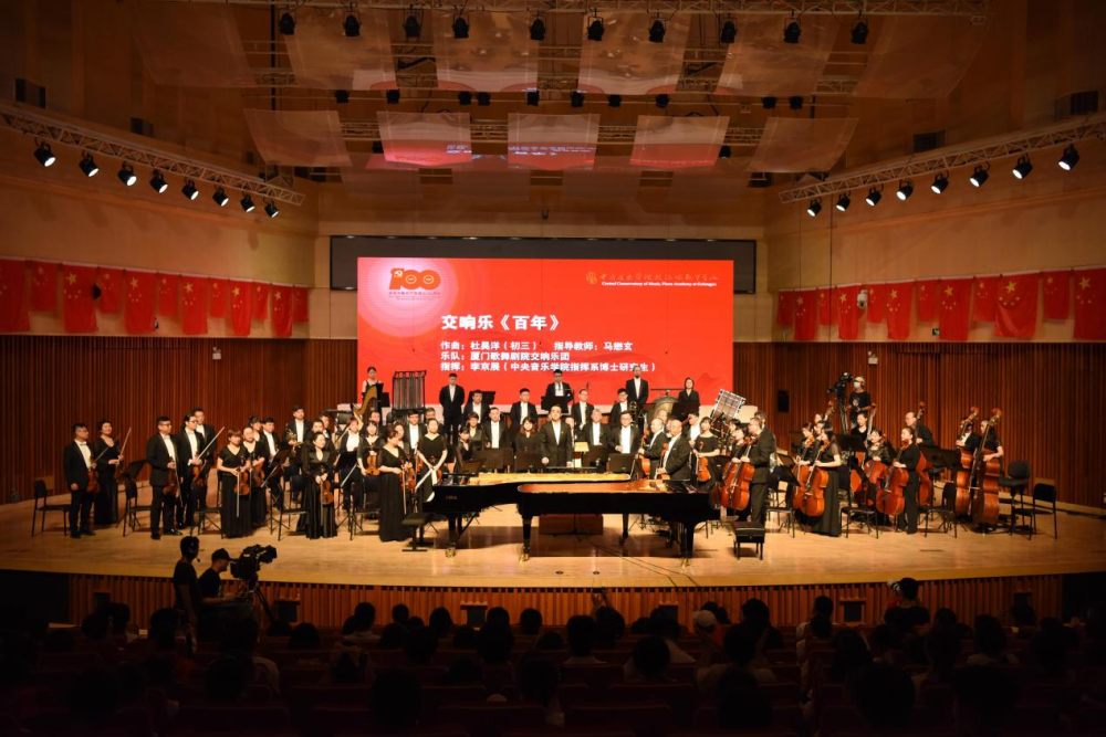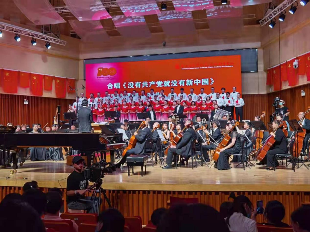 台上师生们,将自己的爱国情怀和对党的热情融入到表演中;台下的师生们,不时抱以最热烈的掌声,两者交相呼应,最终在台上、台下一曲《没有共产党就没有新中国》的合唱中,《百年·回响》庆祝建党100周年专场音乐会落下帷幕。