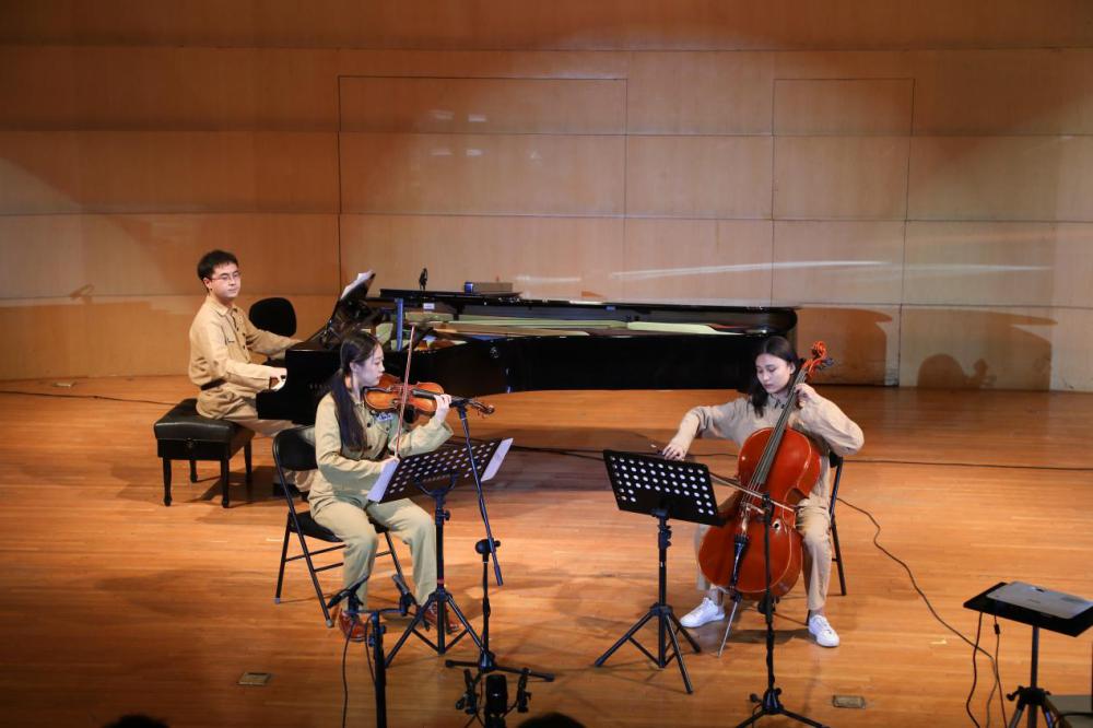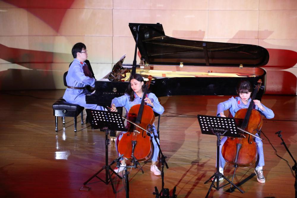 而接下来电影《上甘岭》视频片段的展示和《我的祖国》的演奏,则把观众带到了中国共产党历史中那一伟大而艰辛的时代——抗美援朝。歌曲表达了浓烈的爱国主义思想,唱出了志愿军战士对祖国、对家乡的无限热爱之情和英雄主义的气概。而本场讲座音乐会所表演的《我的祖国》,是同学们在学习过程中改编的器乐版本,体现了开云官网在教学过程中的爱国、爱党教育。