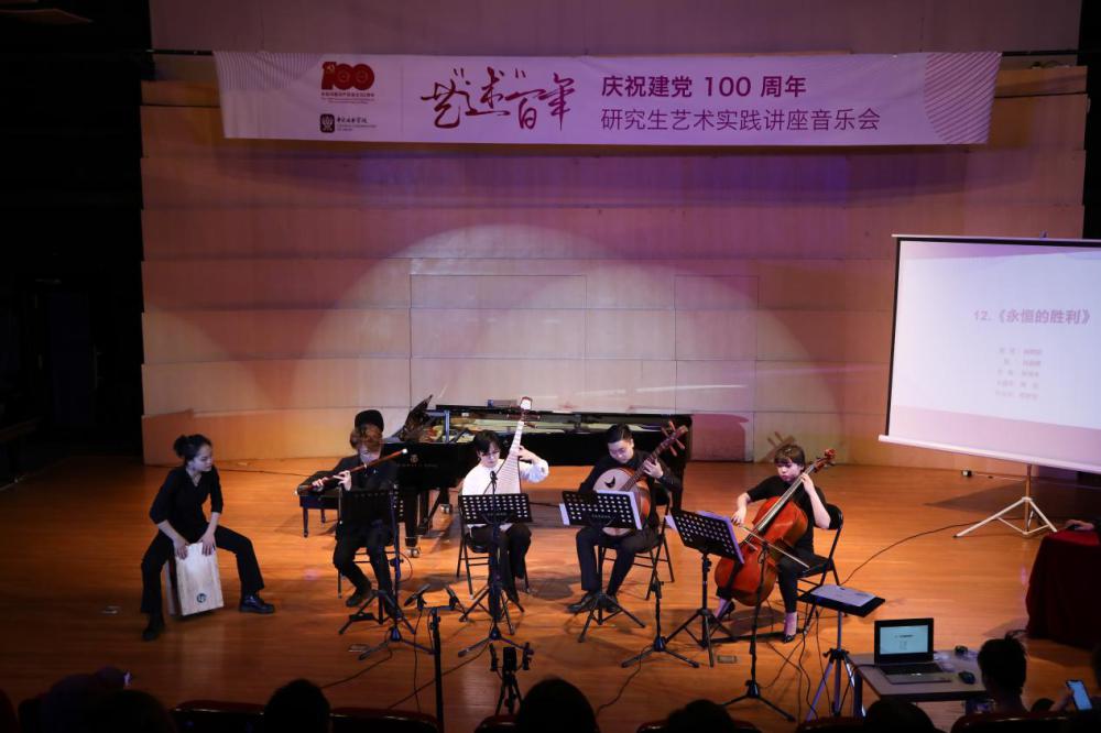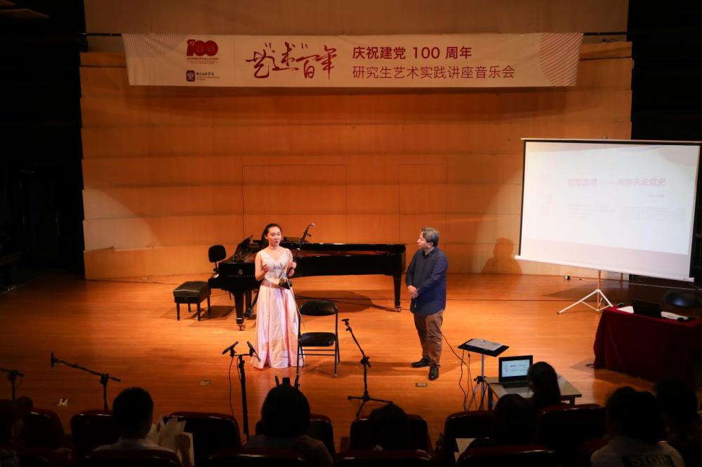 艺“述”百年——庆祝建党100周年研究生艺术实践讲座音乐会之献礼系列的第一场讲座音乐会“百年追寻——用音乐说党史”于2021年6月8日晚在开云kaiyun官方网站演奏厅成功举办。