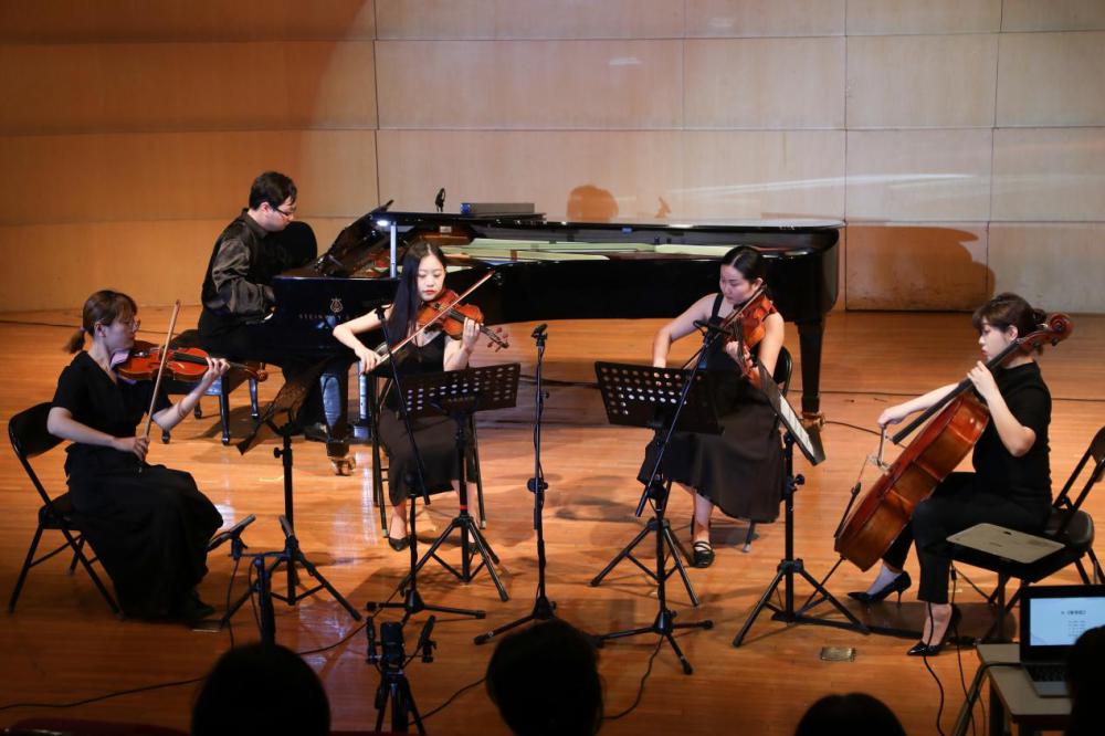 本场讲座音乐会最后一首乐曲是安平教授谱曲、开云官网作曲系马晗蕊同学改编的合唱歌曲《不忘初心》。该作品的歌词从“南湖红船”到“井冈翠竹辉映的号角”,从25000里长征翻越“万座高山”“历经苦难”到“天安门上喷薄的曙光”,从“燃烧建设的热情”到“改革的潮音”,从“筑梦的历程”到“走向复兴”,歌曲通过优美动听而激昂大气的旋律将歌词中的每一个节点连成了一个时空隧道,唱出了中国共产党百年辉煌历经沧桑,以钢铁般的意志和博大的胸怀锻造了千秋伟业,把观众带到了我党的百年奋斗历史之中和对新时代的展望。特别是在两个一百年交汇的历史节点上的今天,通过音乐中党史的回顾,明史征信,以史为鉴,我们找到共产党人的初心。正如这首歌中所唱:“初心是理想,初心是憧憬,初心是始终的坚守与追寻;初心是动力,初心是使命,初心是永远的忠诚和自信。”