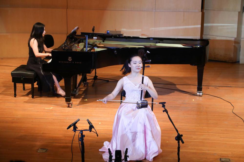 随着安平教授的叙述,时间来到1978年改革开展时期。这是中国即将腾飞的重要时间节点,而《长城随想》则是在这个时代背景下诞生的具有代表性的民族器乐作品。《长城随想》是刘文金创作于1981年的一首二胡协奏曲,1982年由闵慧芬和上海民族乐团首演。在互动环节中,演奏者高白讲述了作曲家刘文金先生的创作该乐曲的背景和故事,音乐中饱含着创作者的民族自豪感以及对祖国未来的美好期望,而这种自豪与期盼,在高白同学的演奏中被表现得淋漓尽致。