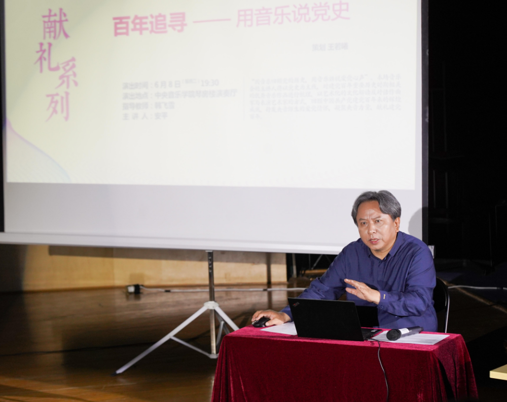 党的十八大以来,习近平总书记就学习中共党史、新中国史、改革开放史、社会主义发展史作出一系列重要论述,全面阐述了学习“四史”的重大现实意义,全面分析了中国共产党的伟大历史贡献和革命精神,科学评价了党的领袖人物的历史地位,对构建中共党史的学科体系、学术体系和话语体系提出了要求和希望。“百年追寻——用音乐说党史”讲座音乐会,作为艺“述”百年献礼系列的首场讲座音乐会,以党的历史为线索,积极响应了党和国家的号召,用音乐回顾党的百年历史,用音乐诉说爱党之心声。在音乐会主讲人安平教授的深情讲述中,献礼系列首场讲座音乐会落下帷幕。