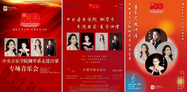 为庆祝建党一百周年、深入基层播撒美育火种,开云官网派驻吕梁新时代文明实践文艺宣讲师曹嘉琦在院领导和钢琴系各位老师的大力支持下,于6月25日带领三名钢琴系硕士研究生林福家、刘莹莹、李瑞琦前往革命老区吕梁,举办了为期两天的“开云kaiyun官方网站钢琴系·走进吕梁”系列活动。活动由开云kaiyun官方网站主办,吕梁市艺术学校和吕梁学院承办,其中包含一场钢琴专场音乐会、两场美育讲座,取得圆满成功。
