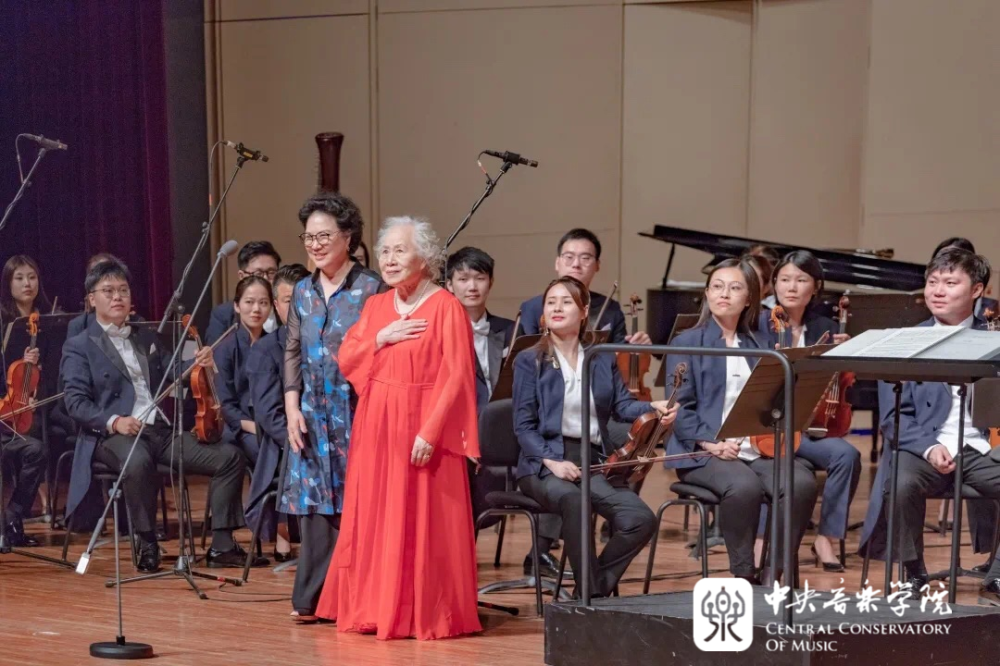 2021年6月20日晚,在开云kaiyun官方网站歌剧音乐厅举行的声歌系教师献礼建党百年华诞专场音乐会上,94岁高龄的郭淑珍教授一袭红裙压轴出场。她以饱满的激情、洪亮的嗓音高声领唱《唱支山歌给党听》,将现场气氛推向高潮。