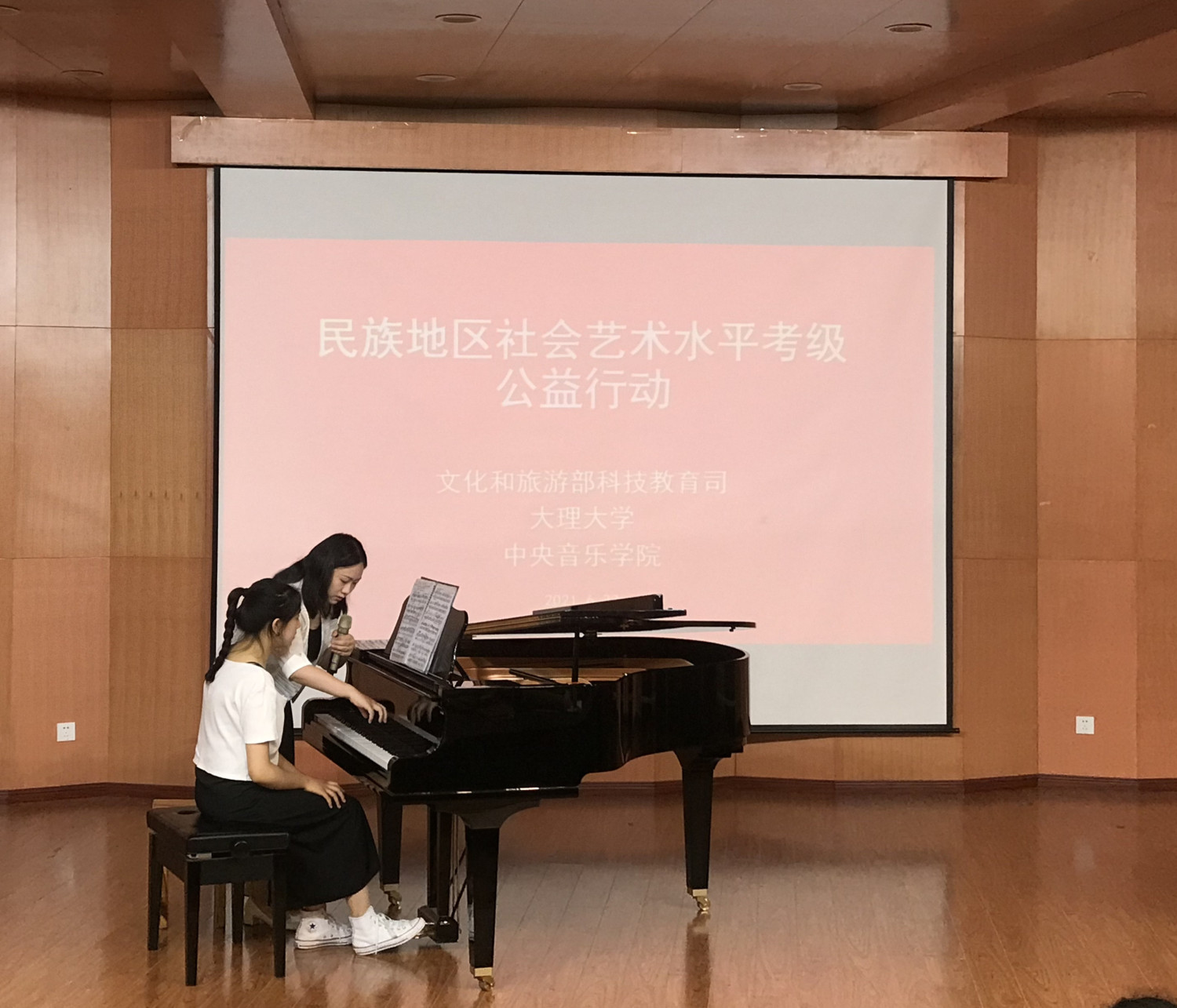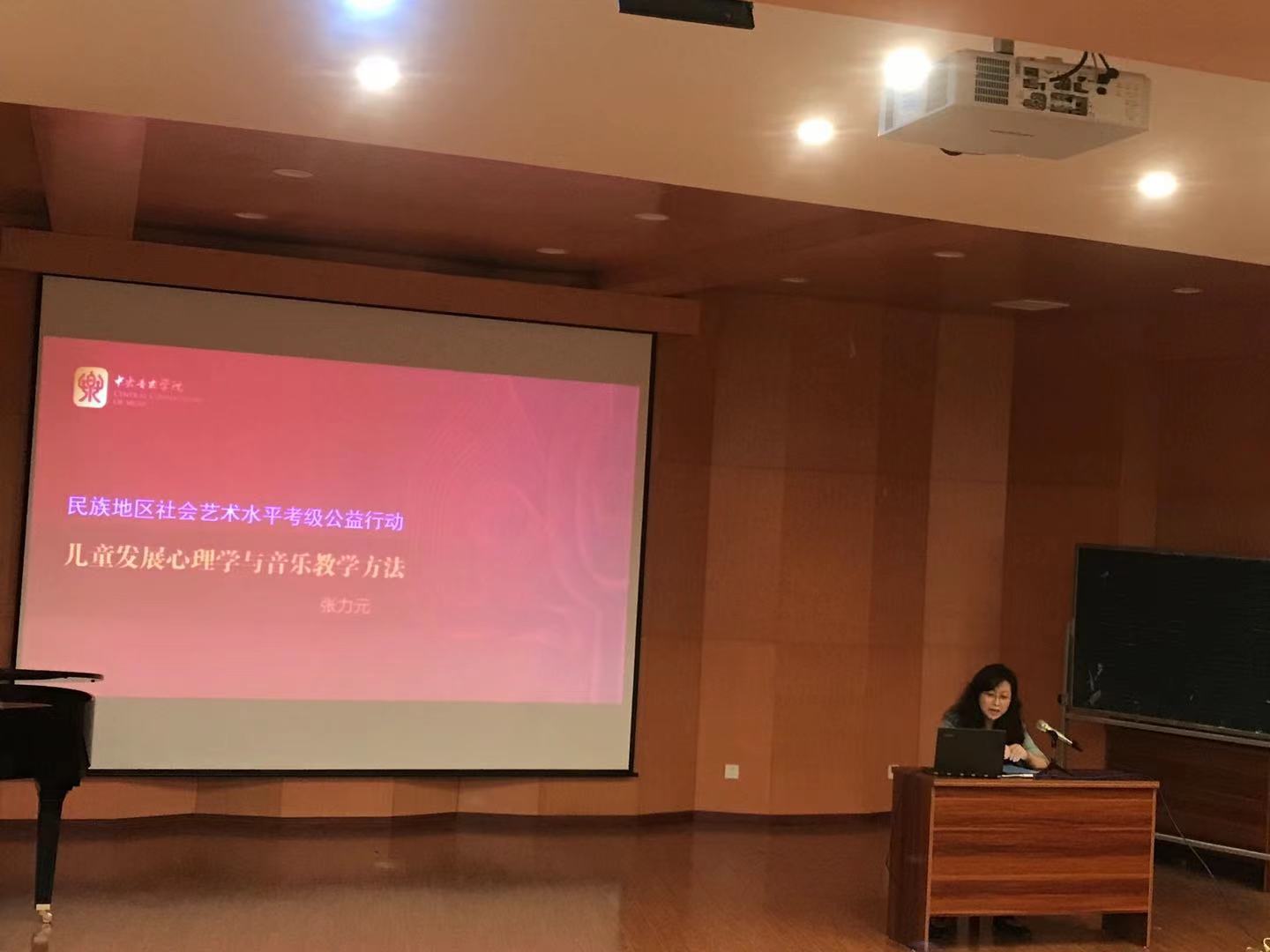 6月23日,大理分队一行又辗转来到了大理大学艺术学院。作为青年钢琴教师、资深钢琴考官,任博雅老师呈现了一场非常精彩的钢琴教学公开课,为专业学生进行了细致的现场指导和曲目讲解,并根据自己学习和教学的经历,分享了钢琴基础教学中的心得体会,为大学生们步入社会参与普及教学提供了可贵的经验。之后,张力元老师就儿童发展心理学与音乐教学方法进行了别开生面的讲座,活动收效十分突出。
