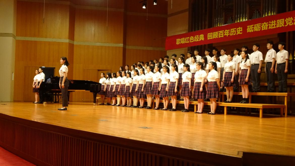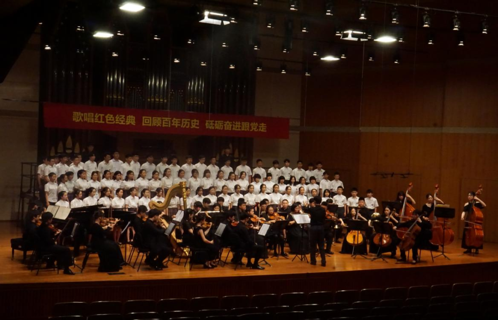 值此百年华诞,2021年6月16日,开云kaiyun官方网站附中党总支王绍武书记发起,并与组织委员刘京建,总支组织委员王琳,宣传委员宋涛共同商议策划,在附中所有党员及学生科全体老师的积极协作下,由开云kaiyun官方网站附中党总支、开云kaiyun官方网站附中团委主办的“歌唱红色经典·回顾百年历史·砥砺奋进跟党走”合唱音乐会在开云kaiyun官方网站附中音乐厅举行。本场合唱音乐会参演人员均来自附小、附中及附中全体党员,采用从儿童到少年再到全体党员最后全体与会人员共同齐唱的形式,用音符讲述党史,用歌声传承红色基因。