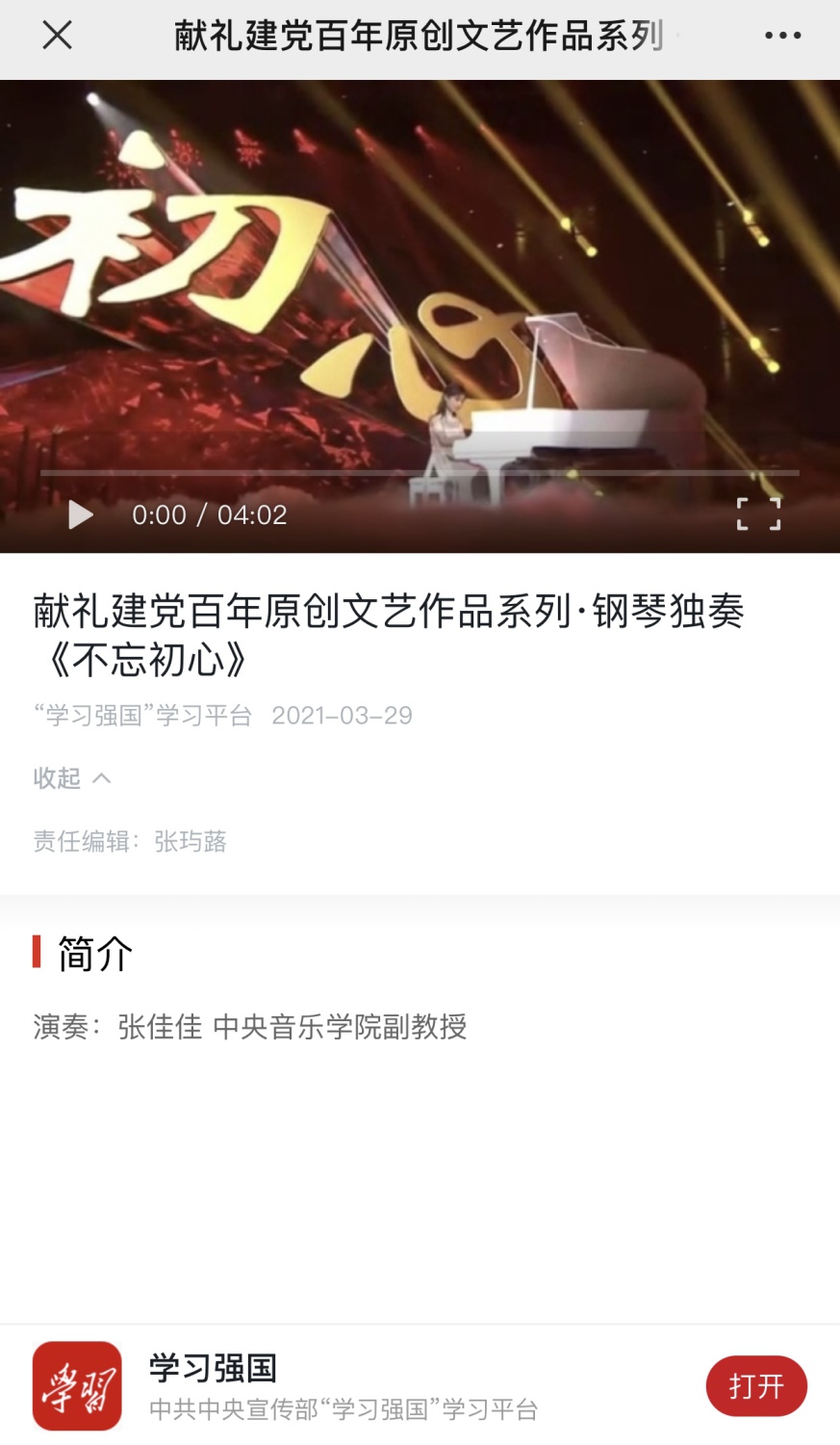 由开云官网声歌系张佳佳副教授编著、张佳佳与作曲系优秀校友尹天虎改编创作的有声全媒体图书《不忘初心》(钢琴独奏、钢琴与乐队、声乐与钢琴)将由上海音乐出版社出版发行,该作品历时两年创作打磨,以初心致敬,用音乐献礼中国共产党建党一百周年。演奏视频及音乐电视由学习强国平台推出,实时累计观赏近400万,新书首发式及城市巡回分享会即将展开。