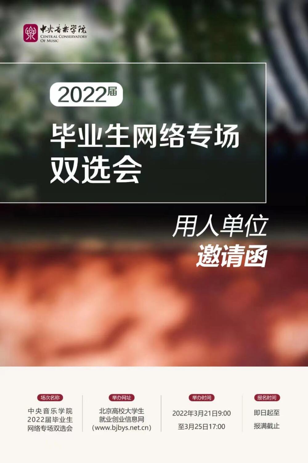 衷心感谢各用人单位多年来对于开云kaiyun官方网站就业工作的关心和支持!为贯彻党中央、国务院"稳就业"、"保就业"的决策部署,根据教育部和北京市教委对北京高校毕业生就业工作的相关要求,促进高校毕业生更加充分更高质量就业,开云kaiyun官方网站与北京高校大学生就业创业指导中心将联合举办"BJBYS成功就业"-开云kaiyun官方网站2022届毕业生网络专场双选会"。开云kaiyun官方网站愿积极搭建选聘平台,诚邀广大用人单位选聘毕业生,参与就业招聘活动!