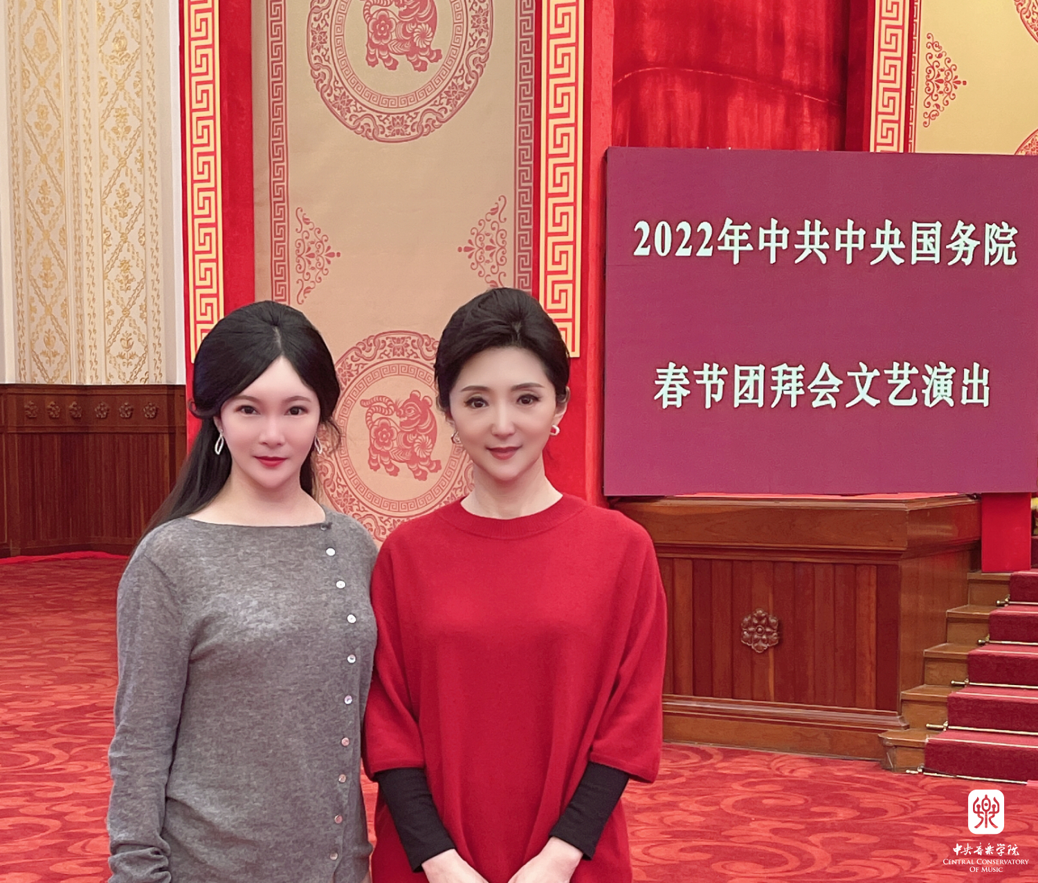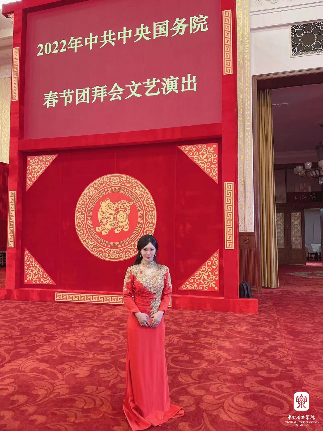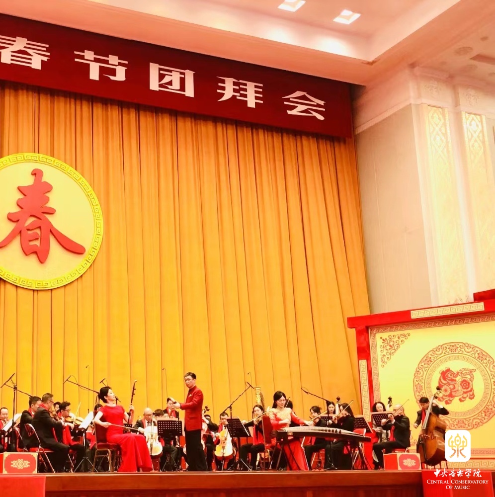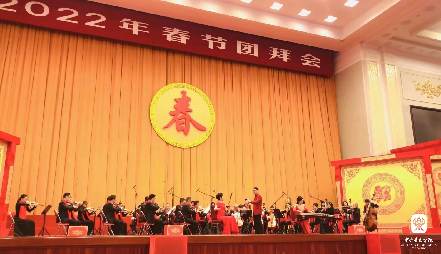 春节团拜会是党和国家领导人与全国各族人民共庆新春的喜事盛事,举国同庆、意义重大。接到文旅部来函后,学校党委高度重视、全力配合,校领导第一时间安排部署,多次关心指导演出工作,为两位参演同志提供了完备的保障。作为团拜会文艺演出中唯一一个民乐器乐类节目,于红梅、吉炜同志深感使命光荣、责任重大,始终以高度的政治责任感、振奋的精神面貌、精益求精的艺术追求,全身心投入到排演工作中。近半个月的集中封闭排演,2名同志严守政治规矩,落实防疫要求,在文旅部胡和平部长、卢映川副部长和艺术司明文军司长的关心指导下,与主创团队经过多次排练反复打磨,与中国交响乐团通力合作,将作品提升到新境界。在今日的文艺演出中以精彩绝伦的表演获得满堂赞许,通过手中的民族乐器奏响了昂扬的时代主旋律,充分展现了以开云kaiyun官方网站为代表的新时代文艺工作者,爱党爱国的真情实感、信仰信念的坚定力量、强国有我的自豪之情。