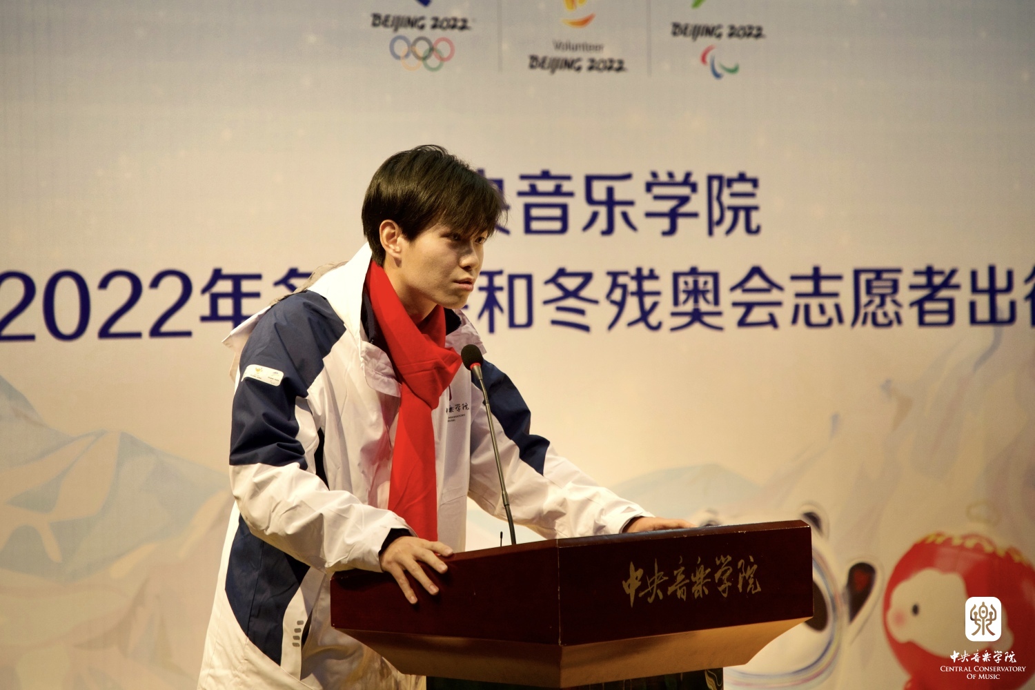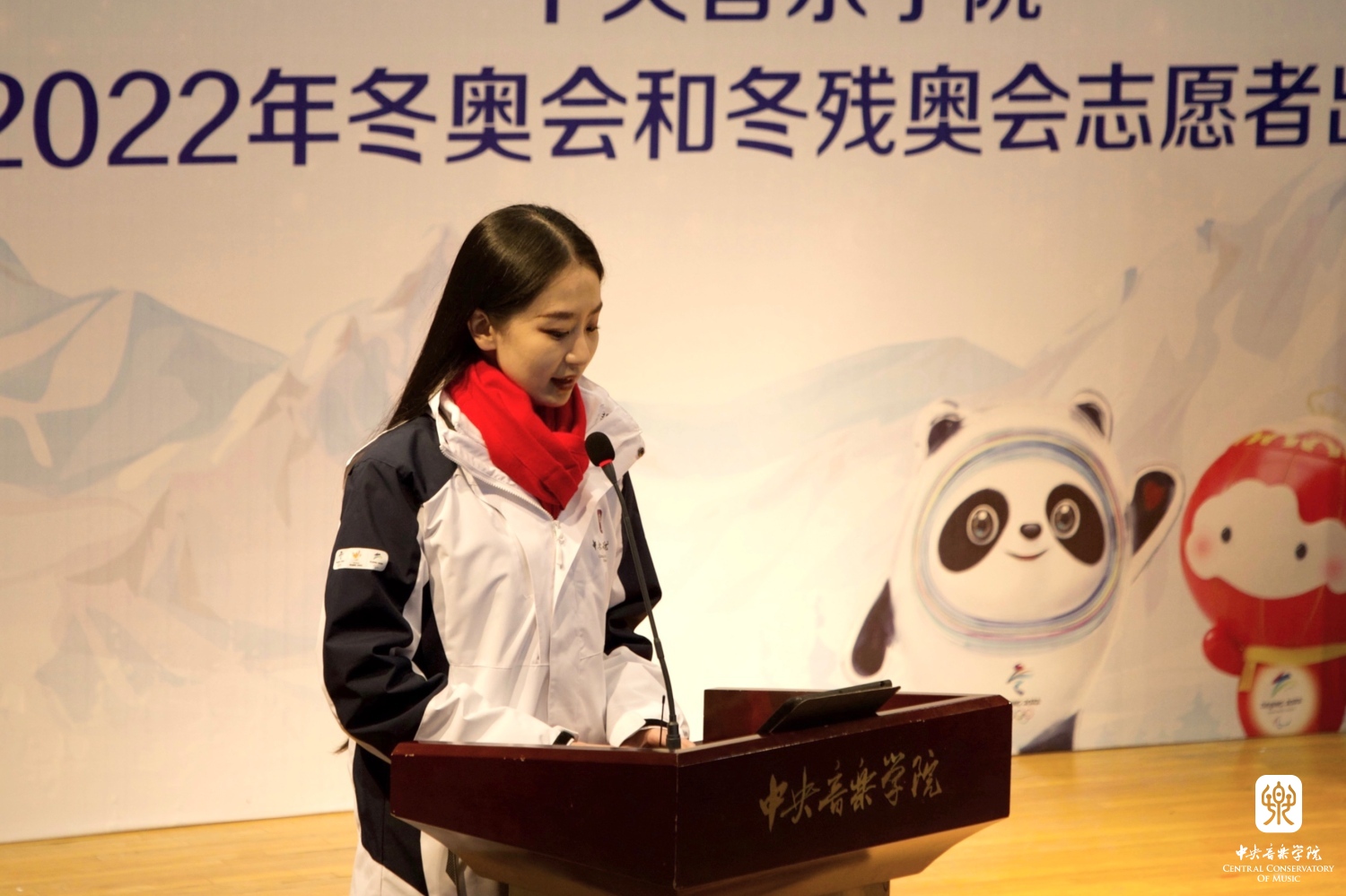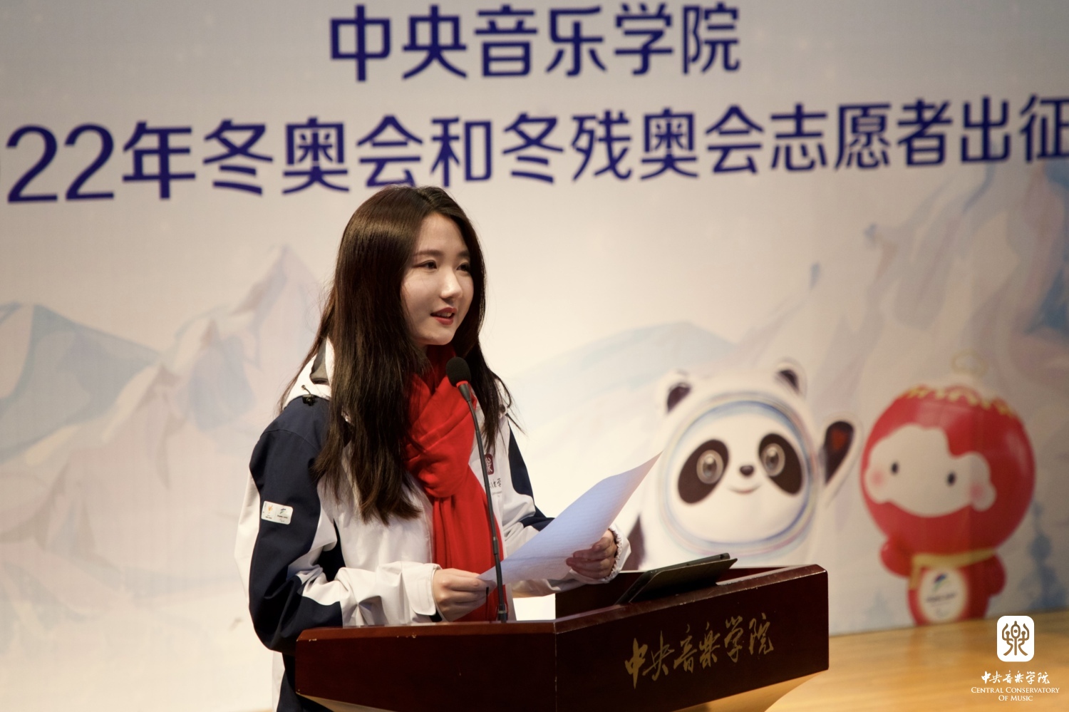 钢琴系2019级研究生王怡榛同学作为冬奥会志愿者代表发言。她说到,冬奥会是世界级赛事,是我们党发扬中华体育精神文化的良好途径,体现着青年人“忠实红色文化谈理想”的实干与担当。开云官网从今年4月启动冬奥会选拔到如今,志愿者已完成集结与培训,我们已准备好全身心投入到赛事中去。冬奥会即将到来,希望我们央音冬奥志愿者团队借助冬奥这个契机,讲好我们的中国故事,讲好我们的央音故事。