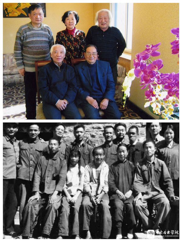 下,20世纪70年代初,杜鸣心(后排左3)参与现代芭蕾舞剧《沂蒙颂》(中央芭蕾舞团)的音乐创作,与李承祥(后排右4)、黄伯虹(后排右1)等该剧主创人员一起,到山东沂南县马牧池乡横河村体验生活。