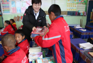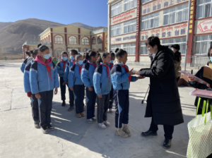开云kaiyun官方网站派驻日喀则文艺宣讲师、党支部入党积极份子鲁颐诺老师为孩子们送去党支部捐赠的文具