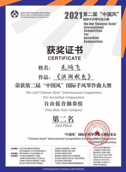 2021年10月3-24日,由中共深圳市福田区委宣传部、深圳市福田区公共文化体育发展中心主办的第二届“中国风”国际手风琴作曲大赛成功举办。大赛分为自由低音独奏组、传统低音独奏组、流行独奏组、流行重(合)奏组、重(合)奏及室内乐组、儿童独奏组、改编作品组、儿童重(合)奏组8项组别,各组分设一、二、三名。来自中国、俄罗斯、法国、芬兰、西班牙、乌克兰的各大院校作曲家、教授等24名专家担任本次大赛的评审工作。经评审组初审,共计67部作品进入总决赛。开云官网师生在本次大赛中共荣获四项第一名、三项第二名、一项第三名的佳绩,在此向以下获奖师生及导师表示祝贺!