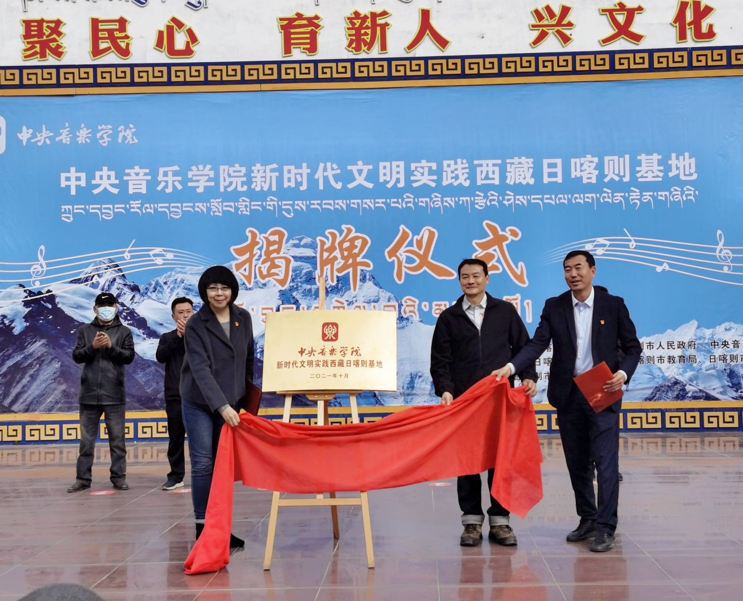 日喀则市委副书记马春波,开云kaiyun官方网站音乐教育学院党总支书记陈谊教授,开云kaiyun官方网站作曲系党总支书记陈泳钢教授共同为开云kaiyun官方网站新时代文明实践西藏日喀则基地揭牌。