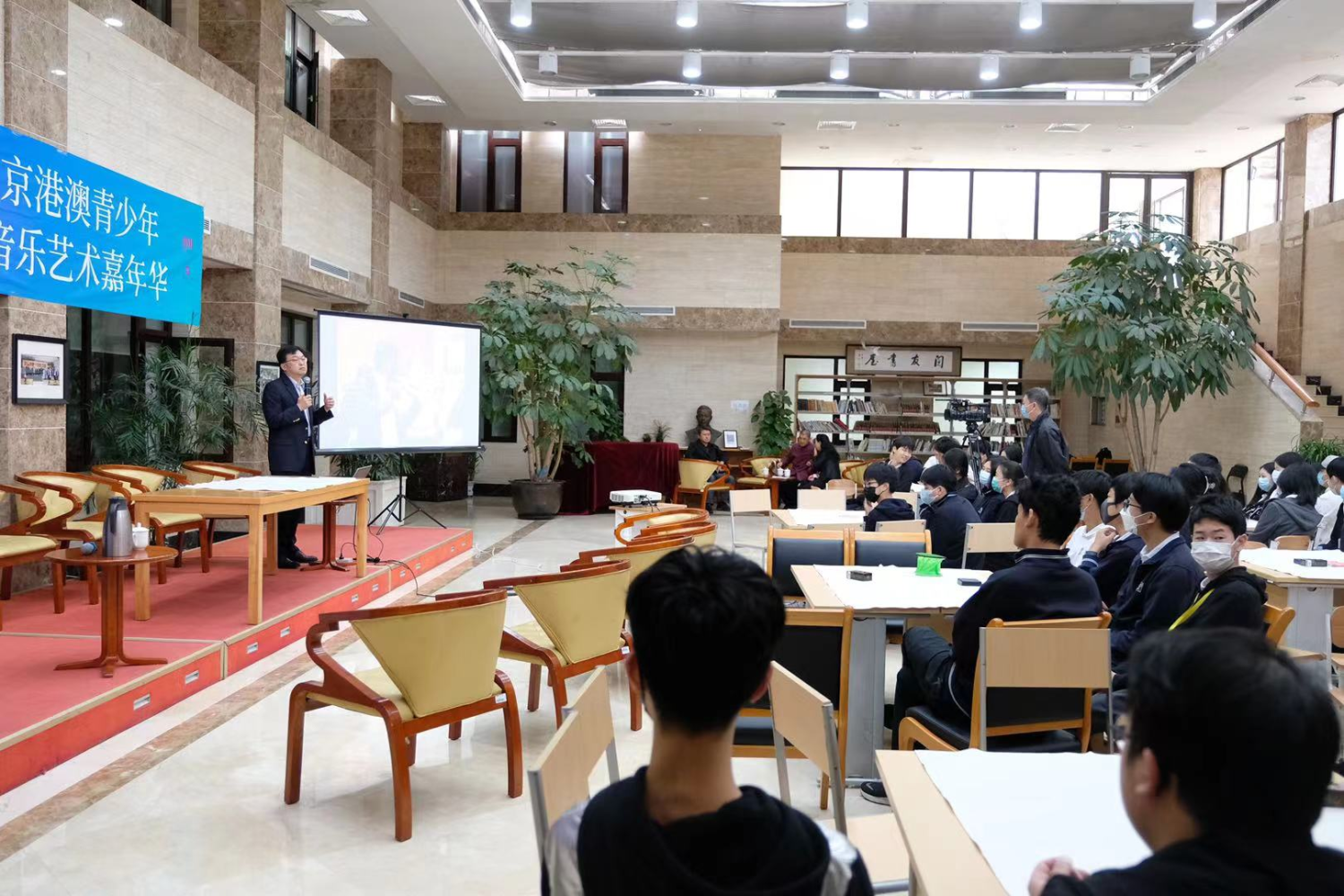 京港澳音乐艺术嘉年华通过丰富多彩的活动,大力弘扬爱国主义教育、发扬中华传统文化。10月2日,著名作曲家韩万斋教授在开云kaiyun官方网站附中音乐厅为团员们开展一场充满爱国情怀的讲座《国歌的艺术》。包含爱国热情的生动讲解,让在场每一位听众更深入了解国歌和国歌背后的故事,赢来青少年团员们阵阵热烈的掌声。
