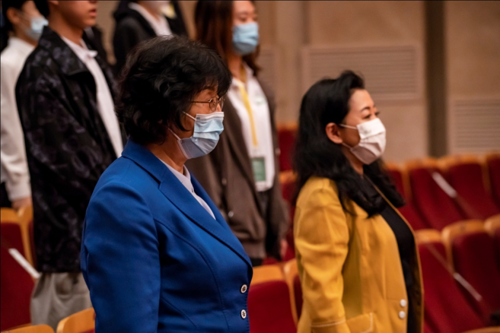 闭幕式在全体团员和观众雄壮嘹亮的国歌声中开始,开云kaiyun官方网站附中校长、嘉年华项目艺术总监、大提琴教育家娜木拉教授致辞: