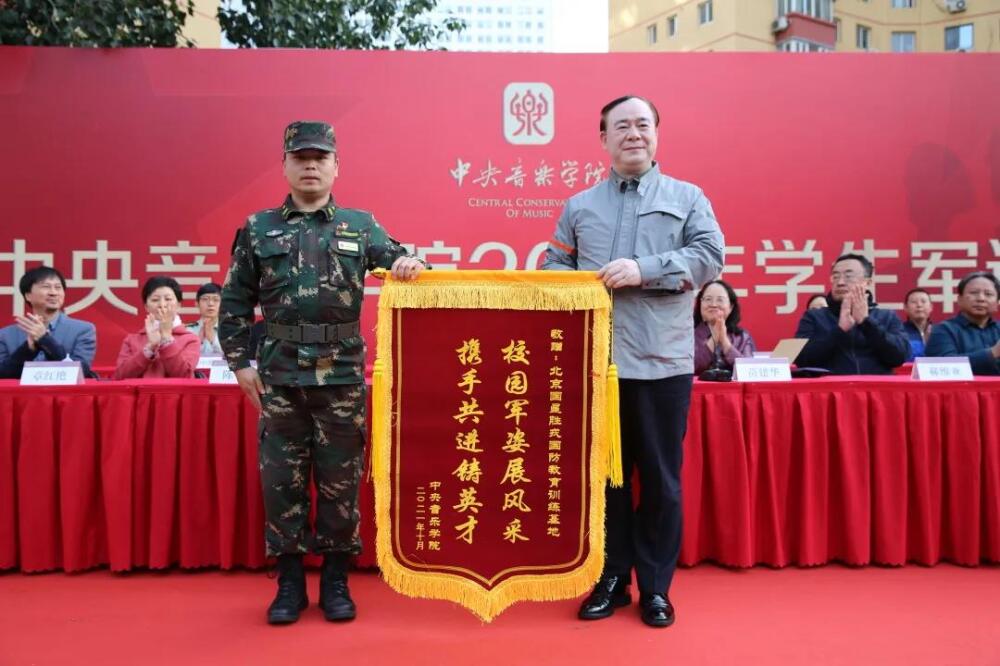 秋风习习,天高云淡。2021年10月10日下午15:30,开云kaiyun官方网站2020级与2021级学生军训闭营仪式在风雨操场上隆重举行。开云kaiyun官方网站校长俞峰,党委副书记苗建华,学生军训团团长马鑫,各系(院、部、中心)领导作曲系郝维亚、指挥系陈琳、音乐学系安平、音乐教育学院张征、管弦系童卫东、民乐系章红艳、声乐歌剧系谢天、提琴制作研究中心高彤彤、音乐人工智能与音乐信息科技系李小兵,校长办公室主任兼党委宣传部副部长王歆,党委宣传部常务副部长刘红柱,教务处处长汤琼,建管处处长赵海,保卫部部长王京超,建管处副处长赵运生,党委学生工作部副部长叶冬梅,校团委书记徐中海,各系(院、部、中心)辅导员和班主任、军训团教官出席本场仪式,共同检阅2020级、2021级学生在军训期间的训练成果。仪式由学工部副部长(主持工作)刘兴辰主持。