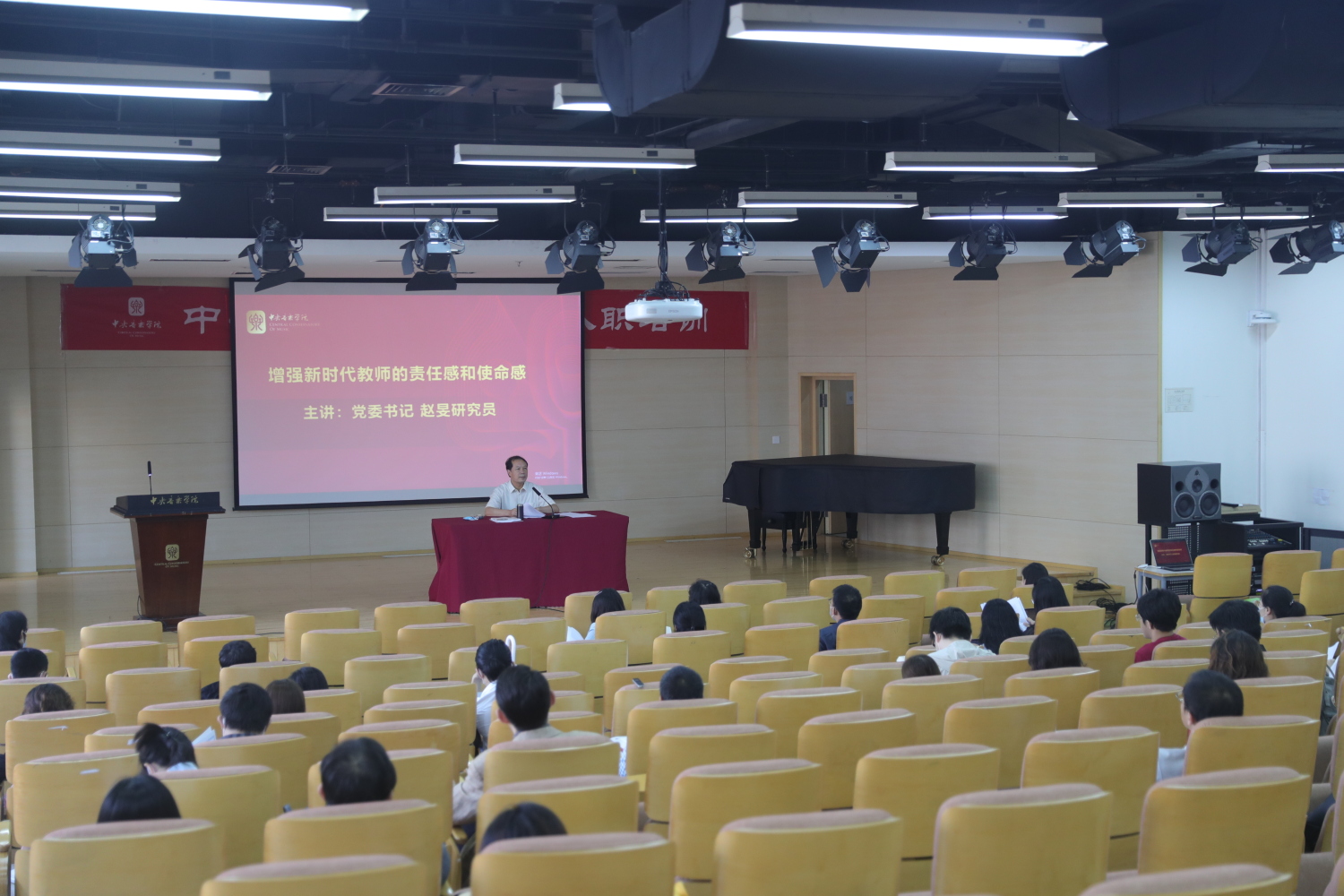 赵旻书记从“理想信念、奉献精神、职业操守,博爱心胸、诲人不倦、团结协作”几个方面就教师的师德修养问题作了系统论述,强调了加强师德建设的重要性,深刻剖析了师德建设的着眼点和面临的主要问题,并且指明了师德建设与教师个人职业发展的一致性。