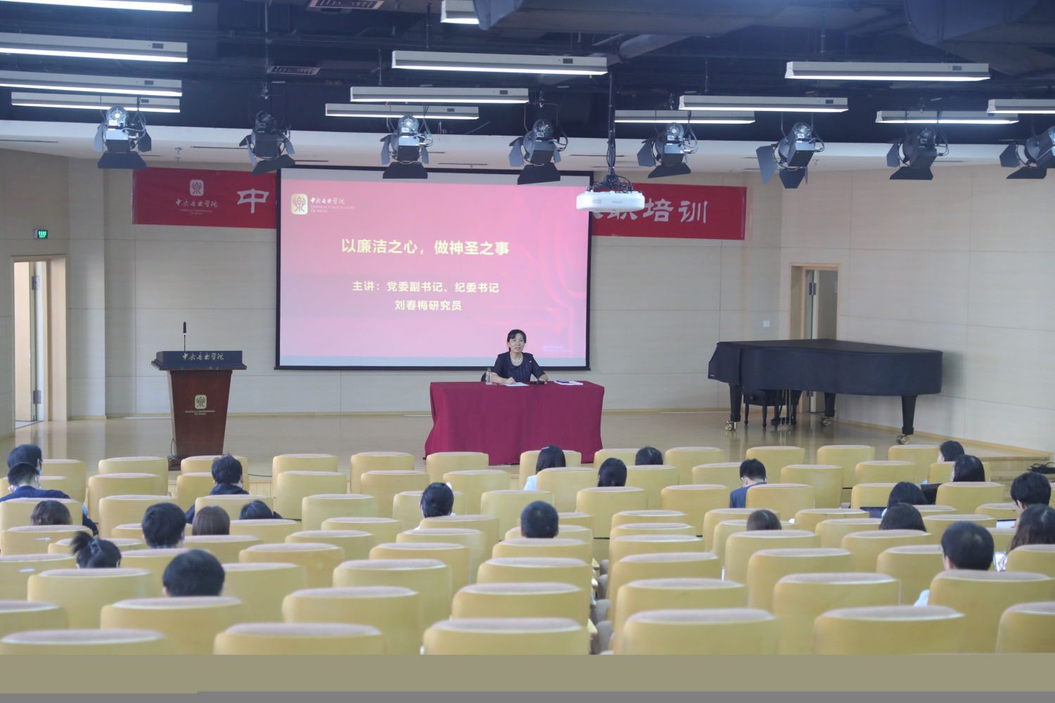 13日上午,党委副书记、纪委书记刘春梅研究员以“以廉洁之心,做神圣之事”为题,为新教师进行党风廉政教育和师德教育。刘书记指出,纪委是一个讲情、讲理的地方;纪委的意义在于惩前毖后、治病救人,严格监督体现的是对广大教师的关心爱护,这是讲情;纪委的工作重实证、重证据,以严肃调查和事实依据为本,这是讲理。纪委的存在就是要帮助大家行得正、坐得直。