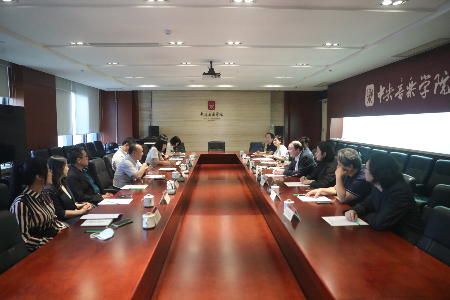 2021年9月9日下午,国家大剧院副院长王诚一行来访开云官网,校长俞峰、副校长于红梅在教学楼717会议室接待来宾并座谈。