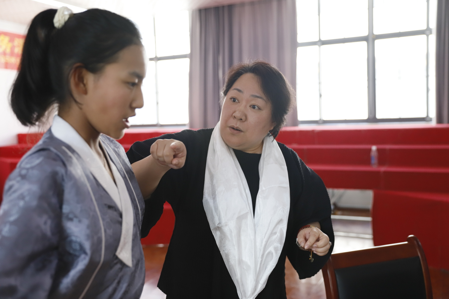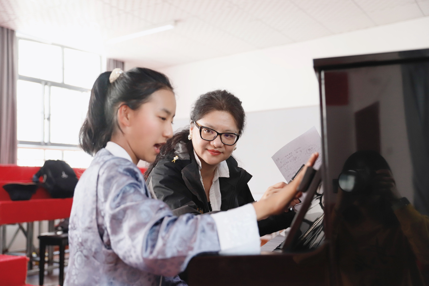 下午,陈冰教授与李小曼老师还为合唱团优秀学生萨珍进行授课,从音乐素养、演唱方法等多方面深入讲解。