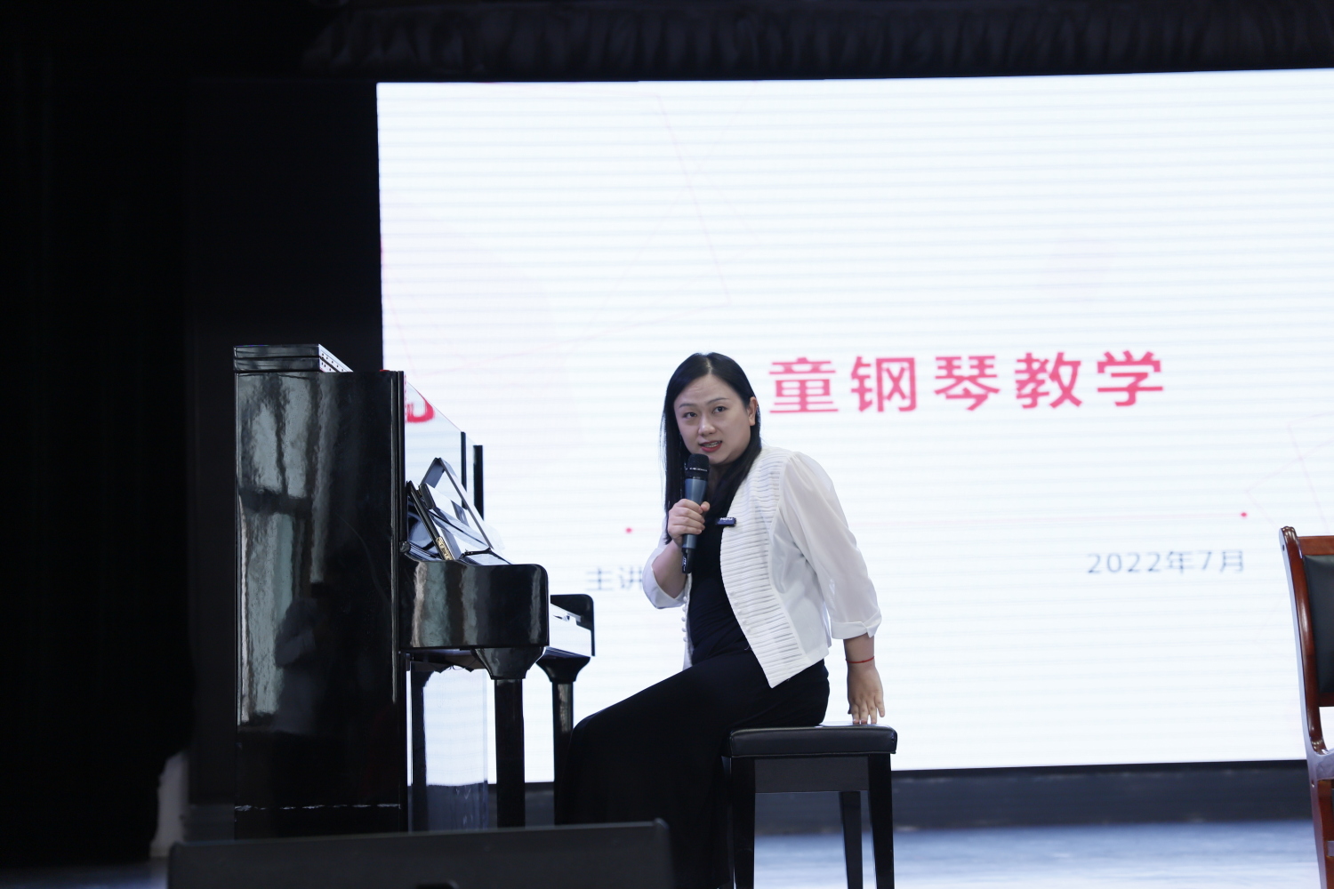 考级委员会声乐资深评委张永强老师通过讲授“字、声、气、腔、情”的演唱方法,使老师和孩子们深入地了解歌唱,学会用正确的方式去运用自己的声音。