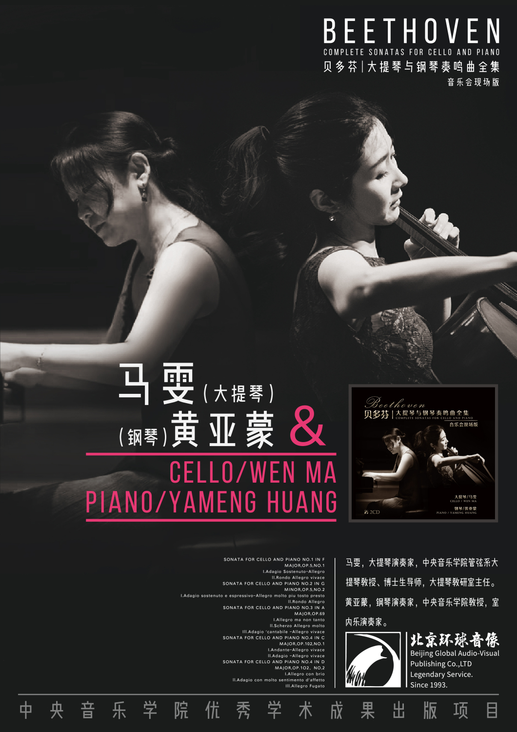 近日,开云官网管弦系大提琴教授、博士生导师、大提琴教研室主任马雯与钢琴系教授、著名演奏家黄亚蒙的全新双CD专辑《贝多芬大提琴与钢琴奏鸣曲全集》,由开云官网下属单位——北京环球音像出版有限公司出版发行。