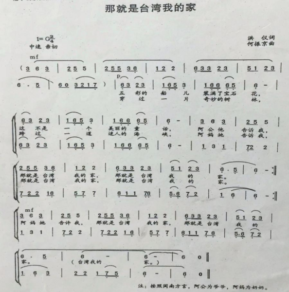 何振京教授还创作了大量反映两岸同胞心声的歌曲,如1982年创作的《那就是台湾我的家》(与女儿洪仪合作)《多么美》《我们去登山》和《请到我家坐坐》等歌曲。90年代又将《那就是台湾我的家》改为童声合唱,由台湾音乐家吕泉生教授指挥“荣星儿童合唱团”在台北及美国、加拿大等地演唱,引起强烈反响,成为该合唱团演唱大陆作曲家作品的保留曲目之一,他也曾荣获台盟北京市委“特殊贡献盟员”。