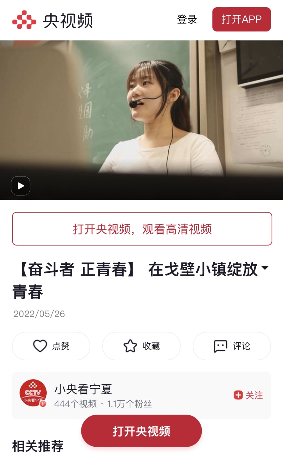 她从首都北京来到西北宁夏的闽宁镇担任孩子们的音乐老师,正用心、用情、用力,开展新时代文艺宣讲与乡村音乐教室建设工作,用音乐启迪心灵,带领孩子们感受艺术魅力,为戈壁小镇的孩子们点亮音乐梦想,燃烧青春梦想。