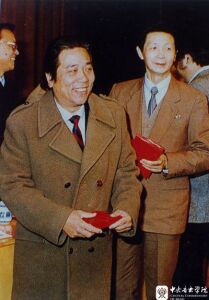 1981年,与管弦系老师合影:从左到右(前排)隋克强、夏之秋、林耀基、林克昌(印尼华侨)、李坚红,后排左起:王耀玲、夏三多、彭鼎新、刘育熙、韩里、杨大风、王振山、王祥