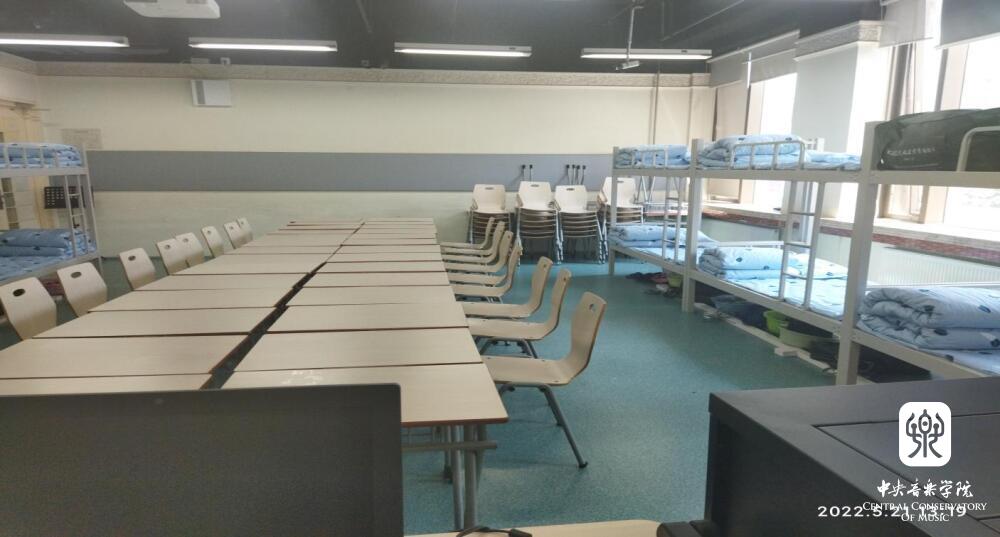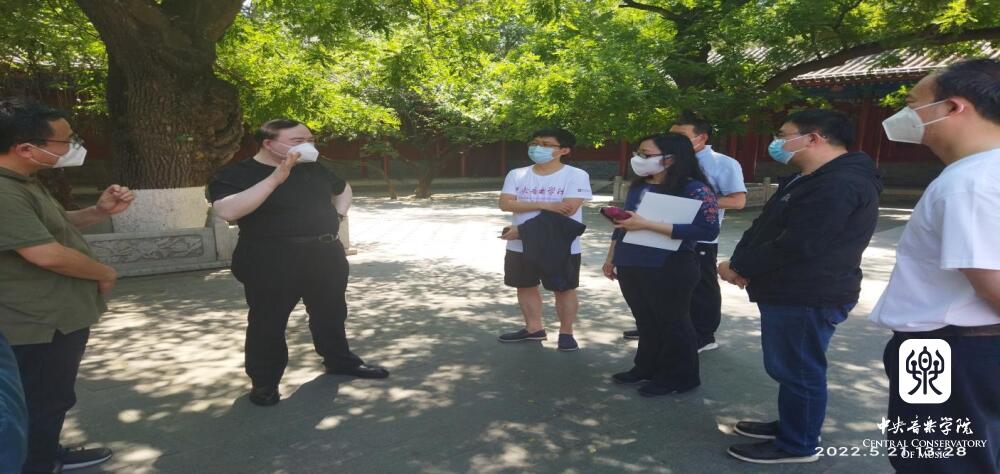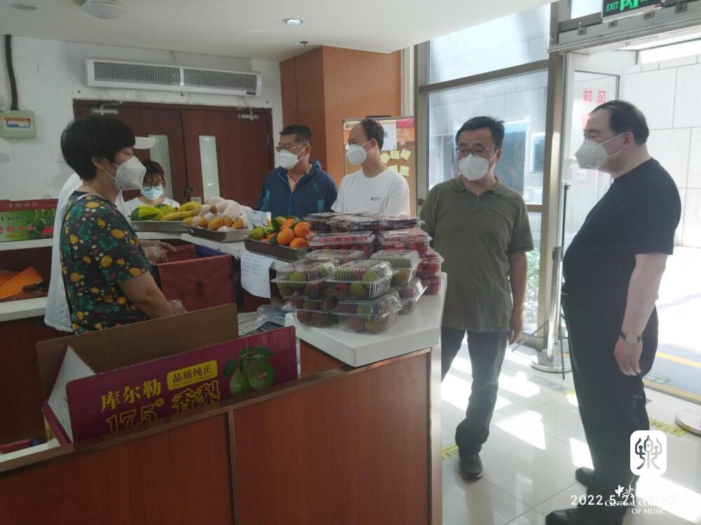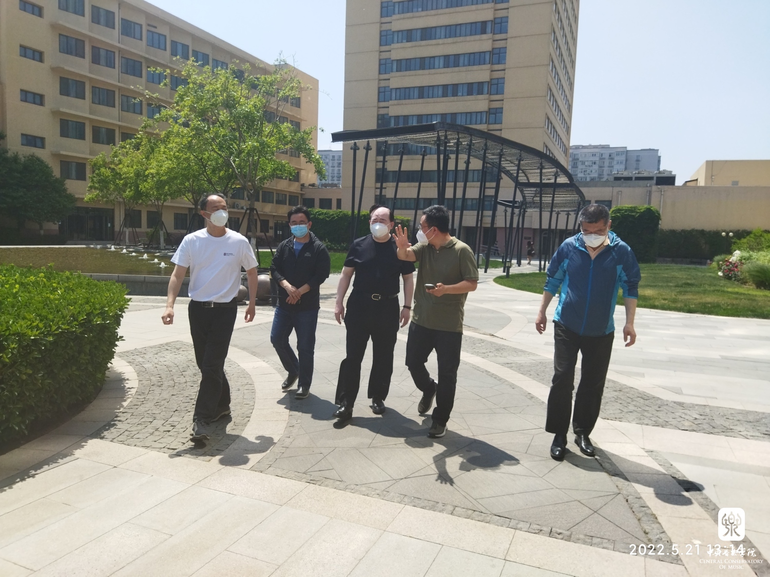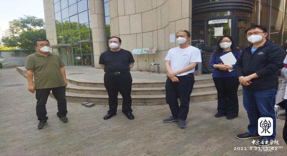 俞峰校长先后来到学校琴房楼、教学楼、筒一楼健康观察点、王府东门外学生专用通道、公寓北门、风味餐厅和核酸检测点等地,现场对校园疫情防控工作进行再检查、再部署。他在琴房楼叮嘱教务处值班老师一定要做好学生练琴保障;在教学楼二层的保安临时住宿点,他强调建管处、保卫部一定要加强对“保食洁”人员的管控,降低传播风险。