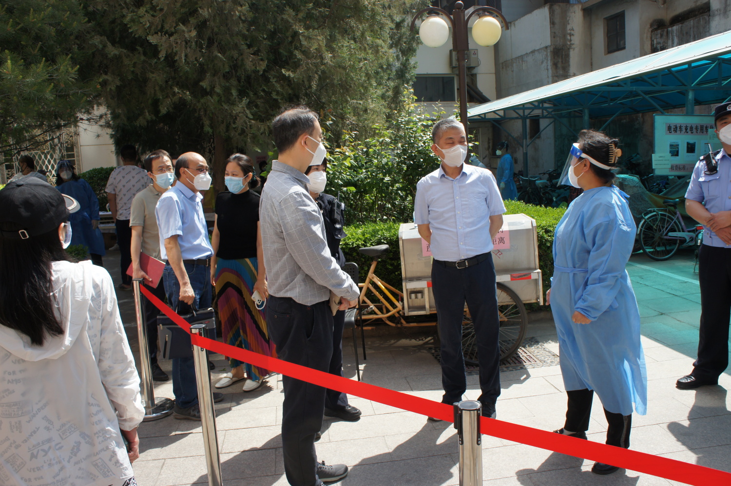 5月4日上午,中共北京市西城区委常委、政法委书记缪剑虹,西城区区委教育工作委员会一级调研员黄国平等来开云官网督导检查核酸检测和疫情防控工作落实情况,开云官网副校长柯扬陪同检查。