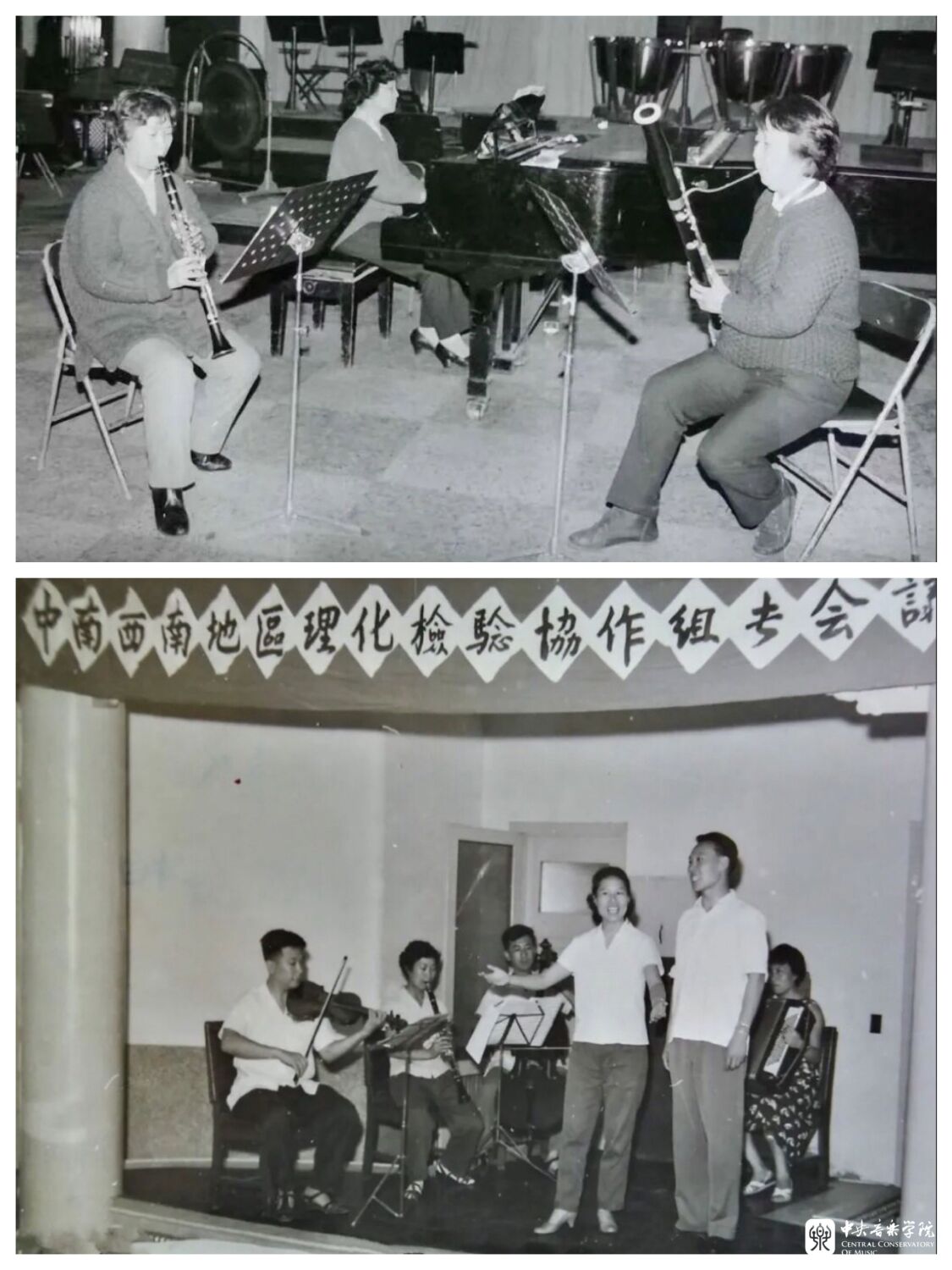 上图:20世纪80年代,陶纯孝(单簧管)、戴云华(巴松)、周广仁(钢琴)组成的管乐与钢琴室内乐小组在排练